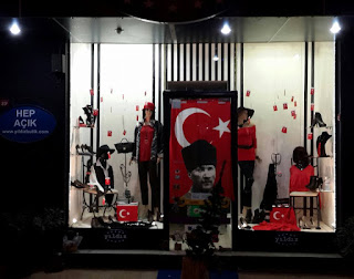 Bu yıl Cumhuriyetimizin 92. yılını kutluyoruz. Bizim butikte gine bir hazırlık , gine bir telaş. Malum cumhuriyet vitrinin yapılması ile ilgili hazırlıklar .Bayraklar kırmızı kıyafetler şapkalar .Konseptimiz ise cumhuriyet dönemindeki kadın imajı.Büyük Önder Atatürün yaptıgı inkilaplardan biri şapka devrimi idi. Osmanlıda kadın figürü, başı kapalı ve üstünde uzun çarşaf ile çizilirdi. Cumhuriyetimizi kurduktan sonra ATATÜRK 'ün ilk yaptıgı şey devrimleri hayata geçirmekti .İşte Bunlardan en önemlisi olan şapka kanunu meclisten 1925 te geçirdi. Ve hemen Uygulamaya başlandı Artık fes, kalpak ve çarşaf giymek yasaktı . Rejimin degişmesini kıyafetle perçinlenmesi için .,daha modern kıyafetler ve daha avrupaya dönük çizgilerin toplum piskolojisine iyi gelecegini ATATÜRK o dönemde bile hesaplamıştı.Kadın, erkek kapalı olan kafaları birden bire büsbütün açmak yerine osmanlının alafranga dedigi şapkaları dayatması ,insanların daha düzgün ve şık görünmelerini sagladı. O dönem kadın ve erkeklere baktıgımızda ne kadar şık olduklarını görürüz. Kadınlarımız cumhuriyetle gelen ciddi imaj degişikligi ile cok şık görünmeye başladılar. Çünkü artık ne giydikleri ve güzleri belli oluyordu. Rahmetli annem Beyogluna (şimdiki galata) Taksime şapka ve eldivensiz cıkılma