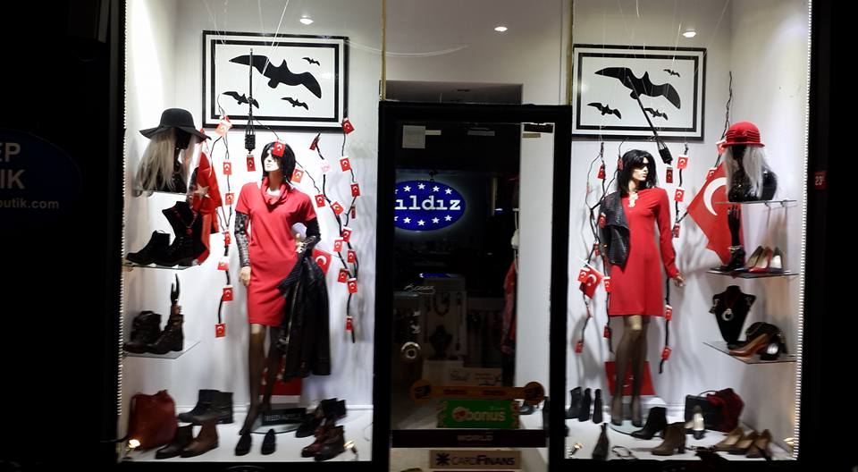 Yeni sezon açıldı. Vitrinler yapıldı .Şimdi sıra cumhuriyet bayramımızın vitrini ne geldi . Bilindigi gibi her vitrinin kendi içinde bir konusu vardır .Bazen sosyal içerik , bazen mevsmisel konular içerir . Eger gerçekten bu vitrinler işleyiş konusunu yansıtıyorsa amaca ulaştı demektir .Bu vitrinimizi 29 ekim cumhuruyet bayramımız için ayırdık .Tabii bayraklar ve bayrak renkli kıyafetler le süslenmiş bu vitrinin konusu çok açık. Kimse ben bu içerigi anlamadım diyemez Ancak herkesin begenisini almak cok sevindirici. Hele akşamüstü vitrin ışıkları yanınca anafikrin herkese yansımasını görmek çok güzel .Çünkü geçenlerin dönüp bakması tekrar bakması bizi gururlandırıyor Yurtdışında bircok ülkede bir hafta evvel her taraf süslenir bayraklara bürünür, görseller le pekiştirilen bu zafer günleri dolu dolu yaşanır .Biz de elimizden geleni yapmaya çaliştik ayrıca .Facebookta kapak resmi yaptık .şimdi biz hem yıldız butik hem de www yildizbutik.com olarak cumhuriyet bayramını kutlarız .Nice cumhuriyetli günlere