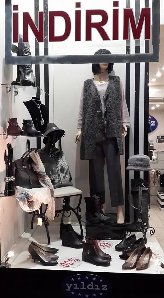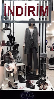 Bir aydan fazladır vitrinimiz yeni yıl konseptindeydi .Çam agaçları süsüler, işıklar, toplar hepsi yeni yılı çagrıştırıyordu . Çok şükür bir yeni yıla daha girdik .Ve 2016 yı karşıladık. Bu yeni yılın , ilk ayının yarısını da bulduk .Zaman su gibi geçerken artık ışıltılı gece kıyafetierinin yerine günlük, zahmetsiz şıklık yapabilecegimiz kıyafetleri sergiliyelim dedik .Ve işe koyulduk .Yalnız yeni yıl vitrini yapmak kadar onların hepsini sökmek, süsleri paketlemek te bir o kadar zor.Tüm butigin aksesuarlerını toplamak butun günümüzü aldı . darısı gelecek yılın başına diyerek süslerimizi kaldırdık Elbette özel günlerin ehemniyetlerine göre degişen vitrinlerimiz oluyor. Ancak içlerinde en görkemlisi yeni yıl vitrinleri oluyor .. Şimdiki vitrinimiz gri ile kemik, pembenin birleşmesi .Şehirli kadının stili diyebiliriz .Deri uzun mont angora bluz diger tarafta peluş yelek V yaka salaj kazak deri ayakkabı ve çanta ile kombinlenmesi cok başarılı oldu . Vitrinler her zaman butigin aynasıdır .Siz nasıl yansıtırsanız öyle görünür . İndirim vitrinlerini yapmak ta zordur .Bir cok şeyi kombin yapmakta zorlanırız .Sezon finalerinde yavaş yavaş tükenen ürünler bu işi zorlaştırıyor. Ama yinede iyi bir iş çıktı . Ben cok begendim, inşallah sizde begenirsiniz