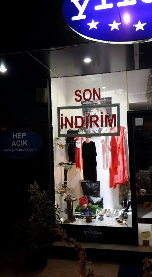 2017 - İlkbahar -yaz sezonunu da sonuna geldik .Bir sezonu daha geride bırakırken fiyatları bir kez daha indirdik .Ve yaz sezonunun finalini yaşadığımız şu günlerde butiğimiz pazar alanı , vitrinimiz aldı başını gidiyor şekli ile hizmet veriyoruz .Çok cazip fiyatlar la tüm ürünleri ortalığa dökmenin şekli de diyebiliriz Amaç yazlık ürünleri bitirip yeni sezona hazırlanmak .Ancak bayram için yeni gelen ithal elbiseler şu ara en çok tercih edilenleri arasında.onlardaki indirim oranları digerleri gibi degilse de tercihler o yönde fazla.Genel olarak bu son indirimde kaliteli , cazip , modası geçmiyecek ürünleri seçip gelecek yaza da hazırlık yapmanın zamanı.Garderoplardaki klasikleri tazelemek için en uygun zaman .Geç kalmadan, elenmeden . www.yildizbutik.com da kendinize uygun fiyata bulduklarınızı kapmanın vakti .Haydi rast