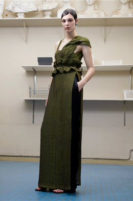 Siyah yeşil ve ekru renklerin yer aldıgı bu defile basında fazlaca ses getirmiş.