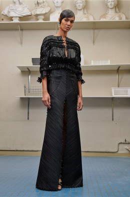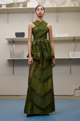 Peplum modeller göze çarptıgı kadar drapeler, metalik detaylar ,örgüler , fileler. .Hepsinin birbiriyle butünlenmesinden ortaya çıkan sonuçlara bakmak cok keyfli. Diyagonal kesimlerle tasarladıgı elbise, fırfırla pliseyi bir araya getirmesi, organze ile kadifeyi birleştirip tuluma adepte etmesi,,kısacası hepsi birbirinden güzel .Ayrıca uzun süreli bir çalışma gerektirdigini görüyoruz Şimdi hazırgiyimciler bu çizgilerden cok şey esinlenecektir .Geçenlerde bir müşterimiz www.yildizbutik.comda gördügü aynı kıyafeti başka bir markayla ispanyadan aldigini söyledi .Dogrudur çünkü Givenchy gibiler cizer ve yapar. Digerleri bunlardan esinlenerek krasyonlarını hazırlar .Sonuç olarak herkes birbirinden bi şeyler kopyalıyor .Bazende sonuç aynısına yakın cıkabilir . Önemli olan kendine yakışanı belli bir kalitede olanı seçmek. Ucuzdan kaçmak .