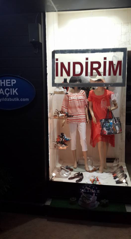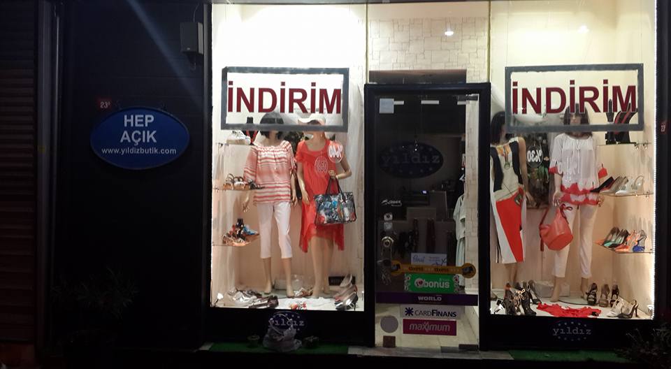 Her on beş günde bir yapılan vitrinimiz bayram dolayısıyla bu gune sarktı. Bu vitrinimizi mercan rengi yapmaya karar verdik.Mercan rengindeki konbinlerimizi hazırladık .Ve vitrinimizi yapmaya başladık ki bir müşterimiz geldi. Tabi dogal olarak onunla ilgilenmeye başladık. Ürünlerimizi gösterdik konbinlerini yaptık .O genel olarak vitrine koyacaklarımızı begenerek onları aldı. İşini cabuk bitirenlerdendir. Ancak bizim vitrin için ayırdıgımız ürünleri satın alınca, bizde başka konbinler yapmak zorunda kaldık .Bu arada asla mercan renginden vazgeçmiyoruz. Tekrar vitrini yapmaya koyuldugumuzda bu sefer başka bir arkadaşımız bayram evveli gördüğü mercan bluzu almaya geldi. Şaka gibi biz konbinliyoruz tam vitrine koyacagız satılıyor. Bu dönemin en buyuk hendikapı, aynı ürünleri bir daha bulamamamız.Tabii vitrine koyacagımız kıyafetlerinde icerde aynılarının olması şart.Bir ürün en iyi vitrinde kendini bulur ve talebi fazlalaşır. onun için vitrine koyacagınız ürünün devamı içerde olaması lazım .biz vitrini bitirdik .Derken www.yildizbutik.com dan onlyn sipariş olarak vitrine koydugumuz elbise istendi T