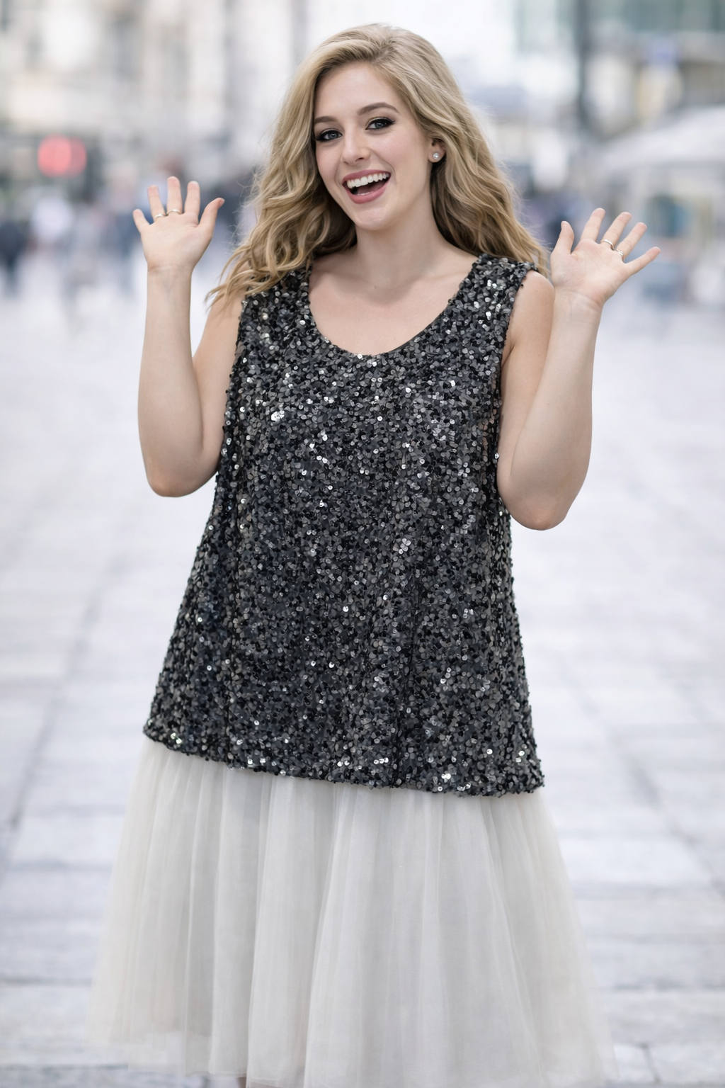 Antrasit Silme pullu İtalyan Kolsuz Bluz