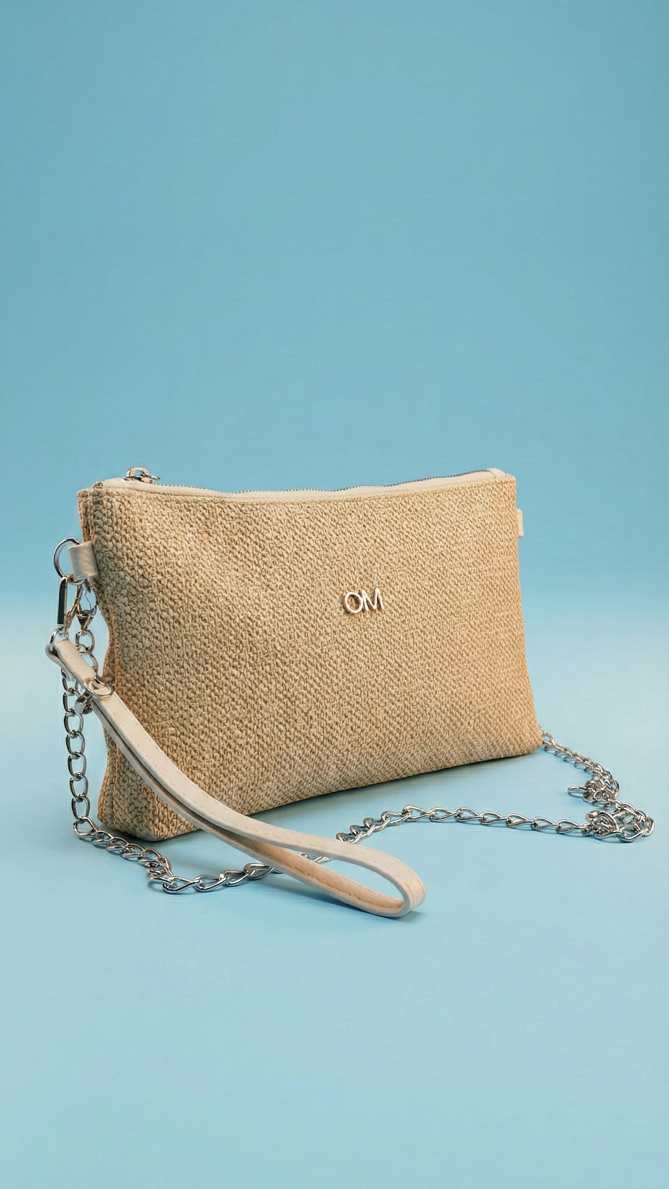 %90 doğal görünümlü suni hasır, %10 pamuk astarlı. Örme yüzeyiyle yaz mevsiminin ruhunu taşır; fermuarlı portföy formu sayesinde hem güvenli hem de stil sahibi bir kullanım sunar. Plajdan şehre, davetten kahve buluşmasına kadar her stile uyum sağlar.
