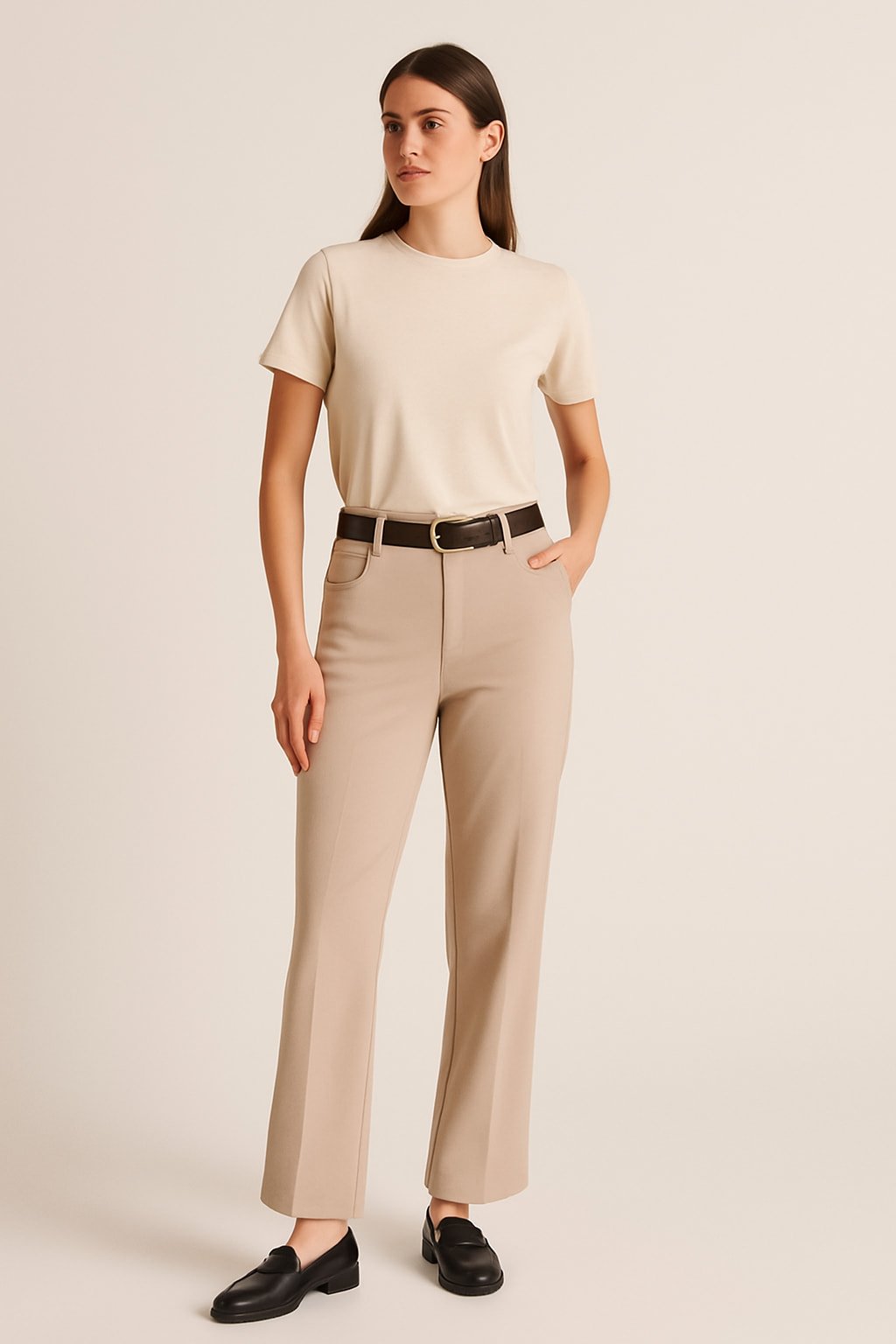 Bej Rengi Kalın Likralı Boru Paca Pantalon