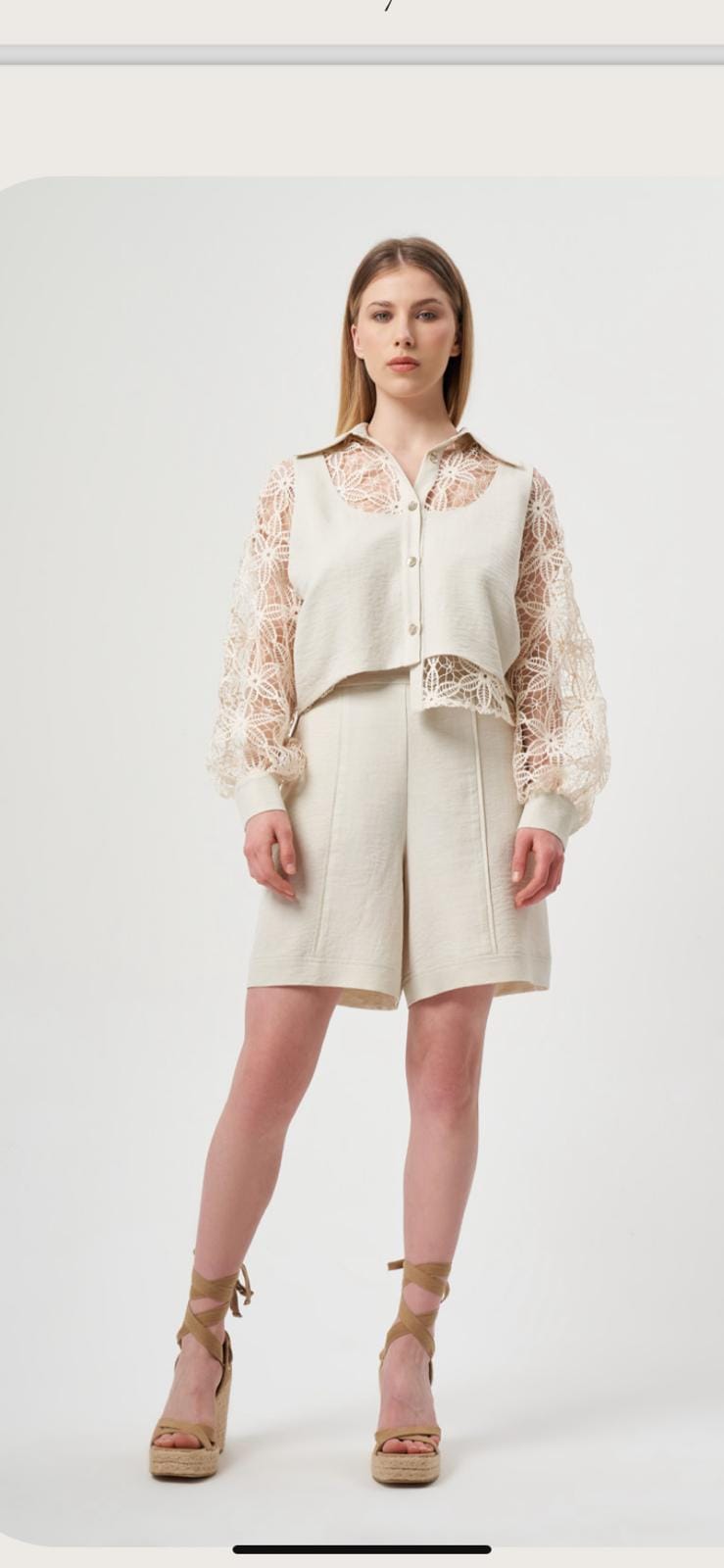Bej Rengi Kolları Fistolu Gömlek