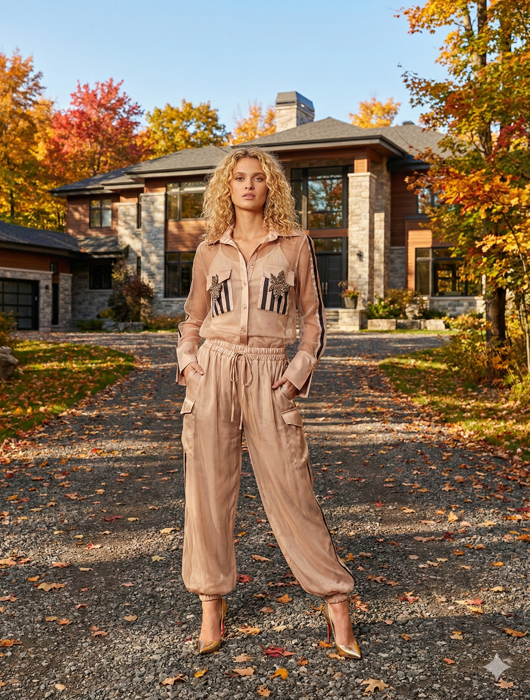 %70 saten polyester, %20 organze, %10 viskon içeriklidir. Transparan, hafif parlak gömlek kumaşı ve içinde sabit atlet detayıyla hem zarif hem rahat bir kullanım sunar. Modern kesimiyle özel davetlerden günlük şıklığa geçiş parçası olarak öne çıkar.