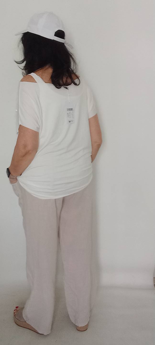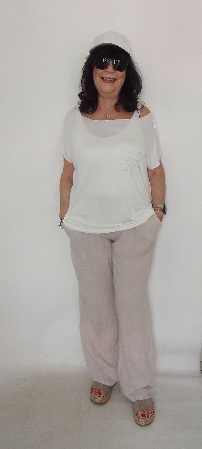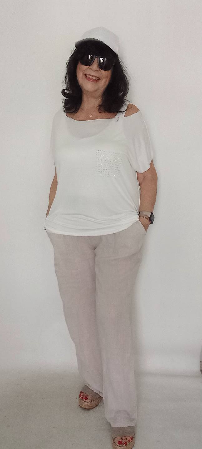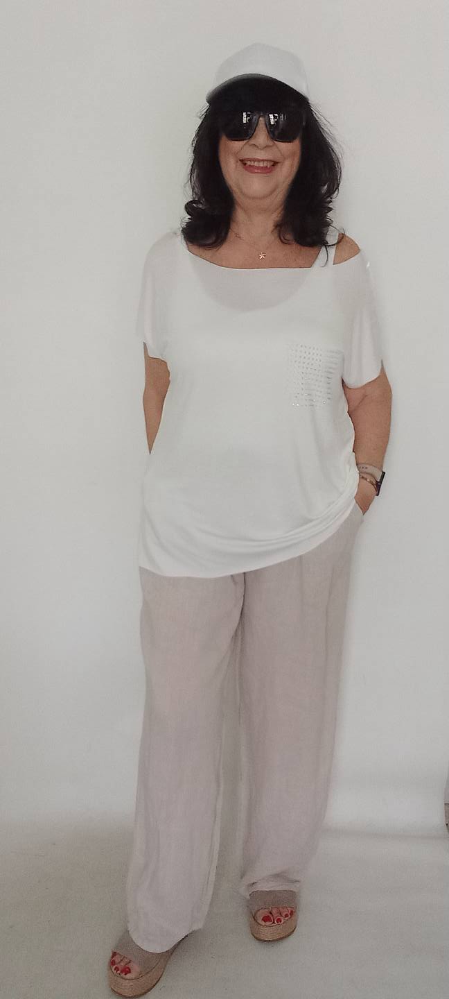Beyaz Cebi Taşlı Sade Penye Bluz