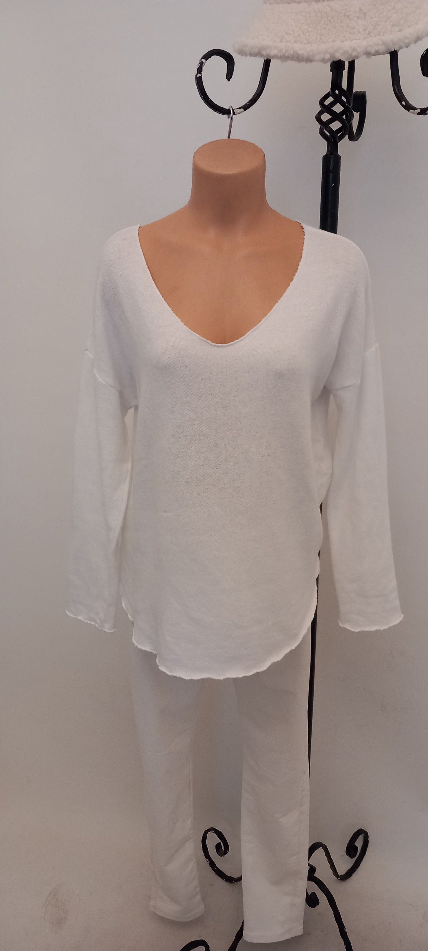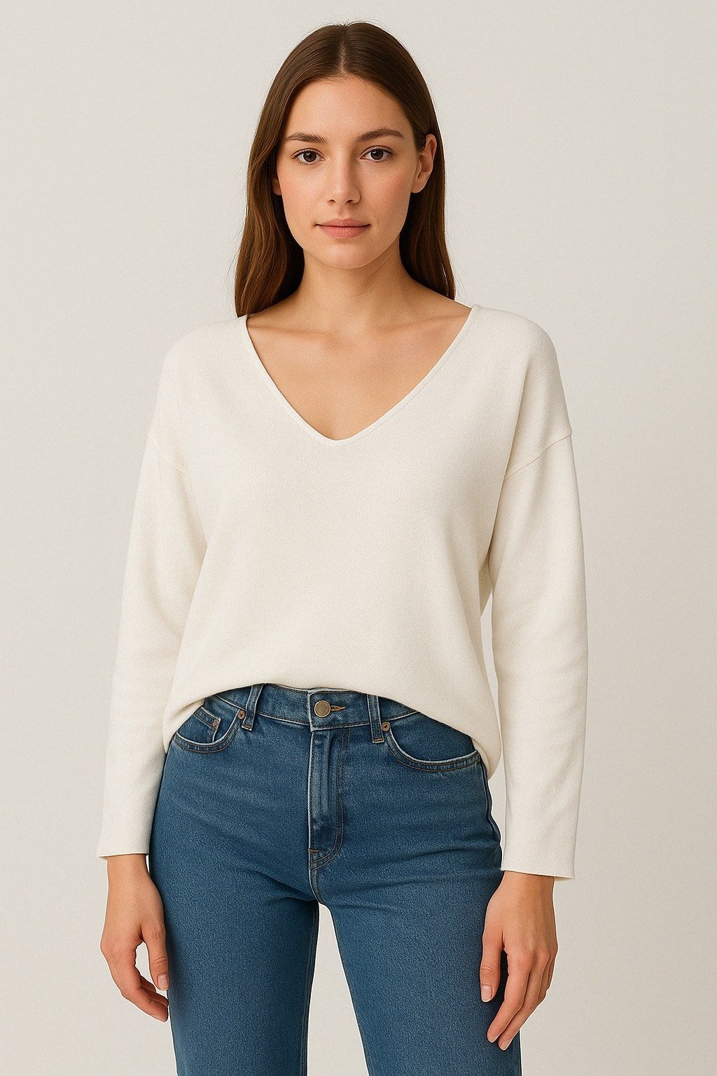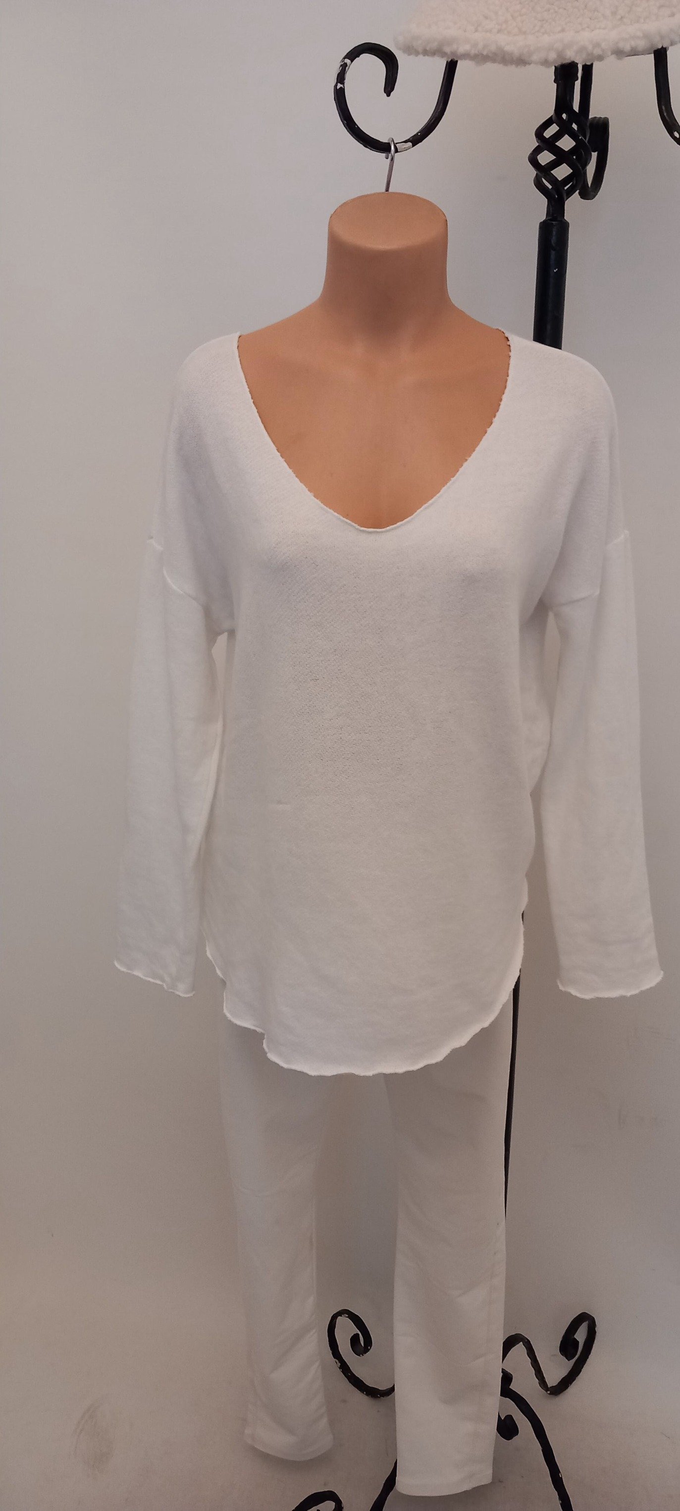 Beyaz Cotton V Yaka Triko Bluz