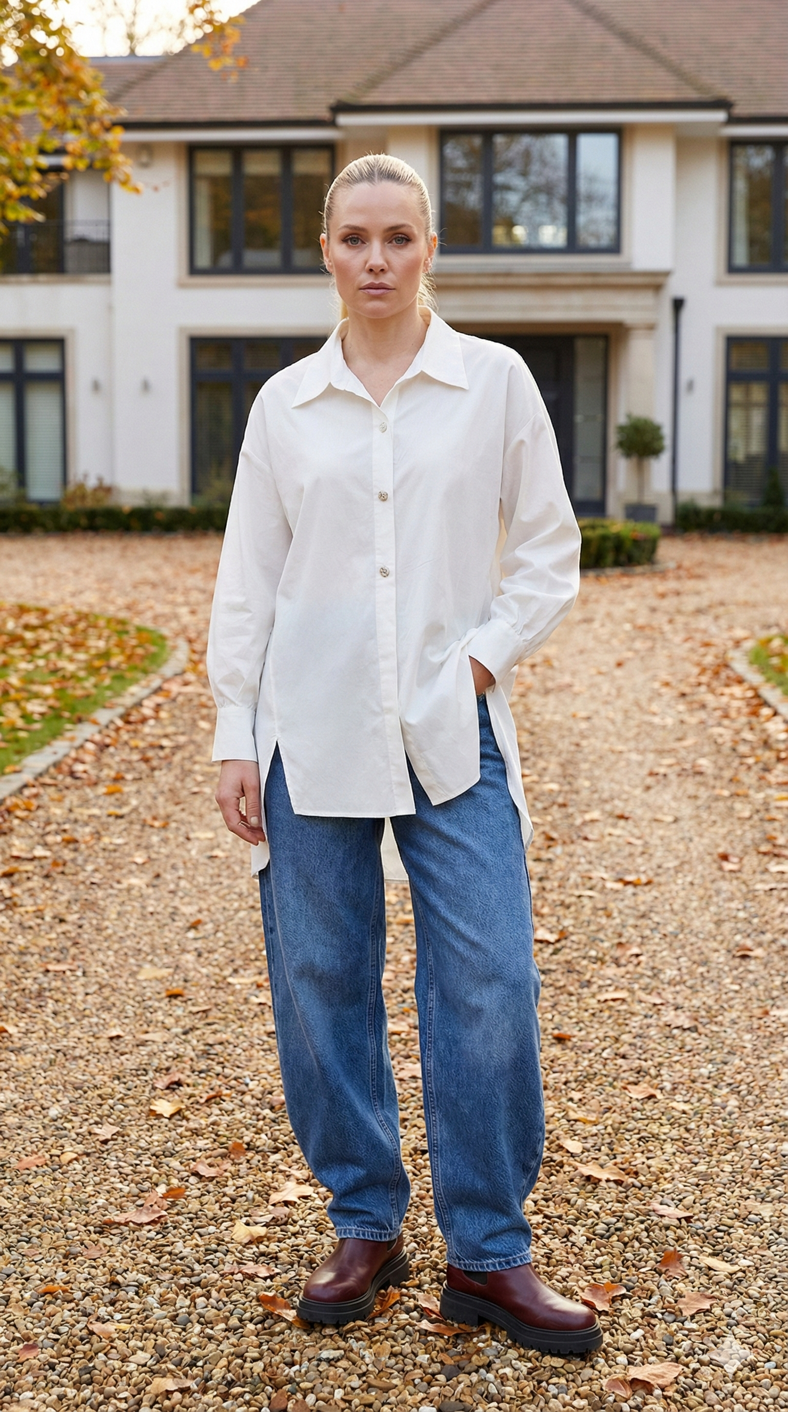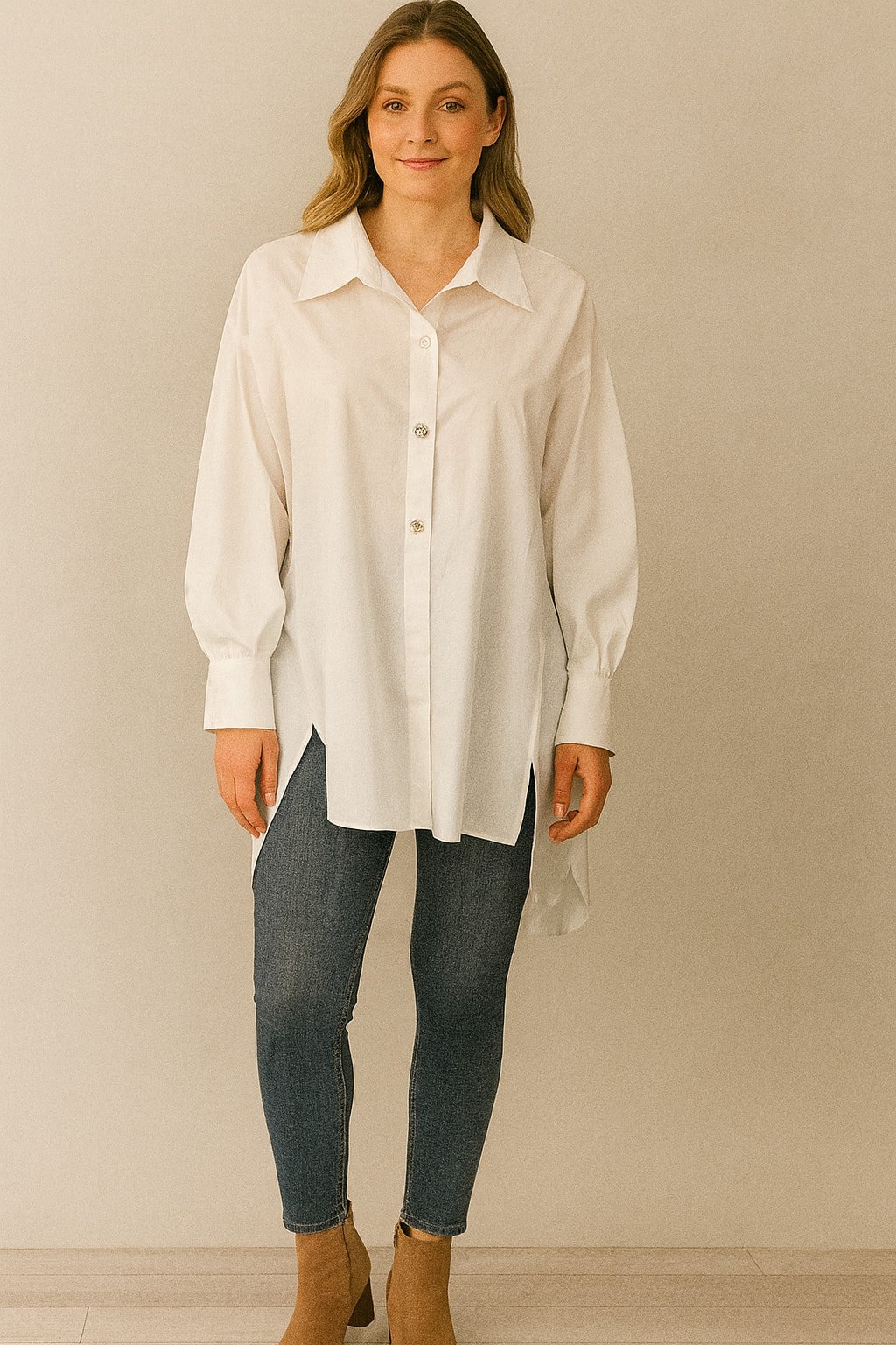 Beyaz Salaş Poplin Gömlek arkası duz bol
