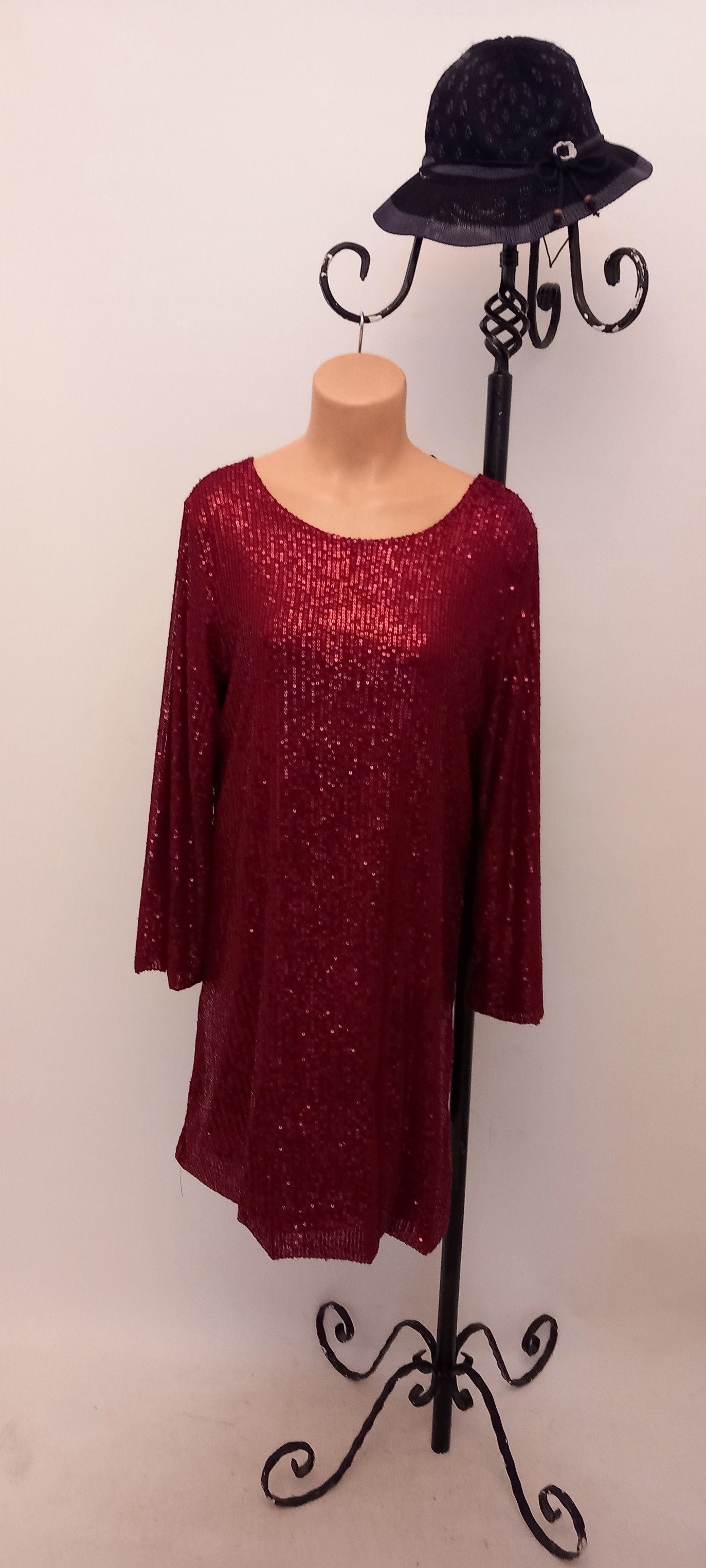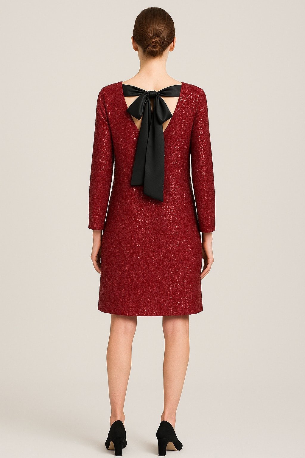 Bordo Pullu Kısa Uzun Kollu Elbise