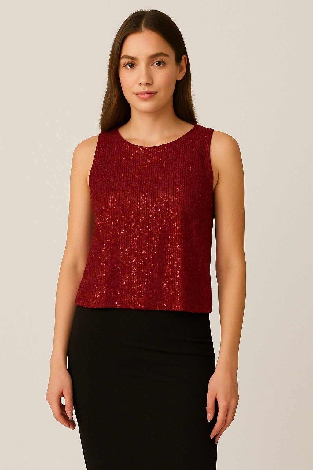 Bordo Rengi İtalyan Pullu Kolsuz Bluz