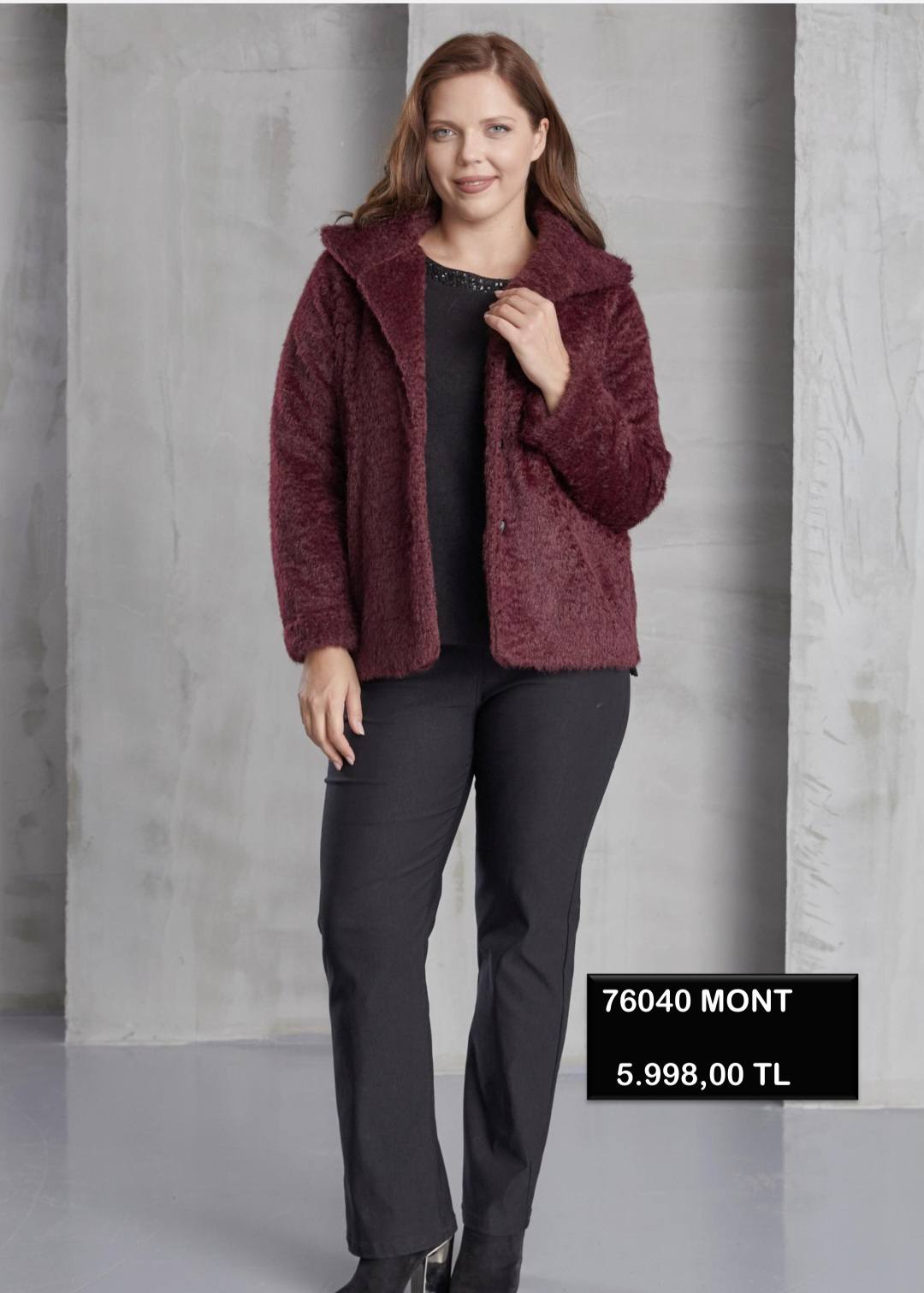 Bordo Tüylü Kumaş Kapşonlu Kaban