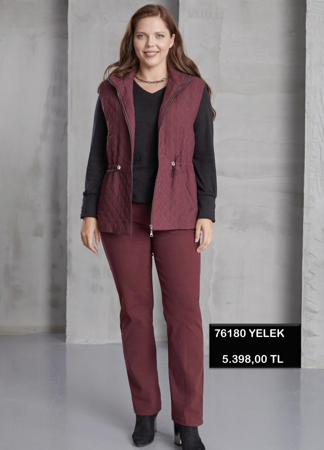Bordo Yagmur Almaz Kapitone Kapşonlu Yelek