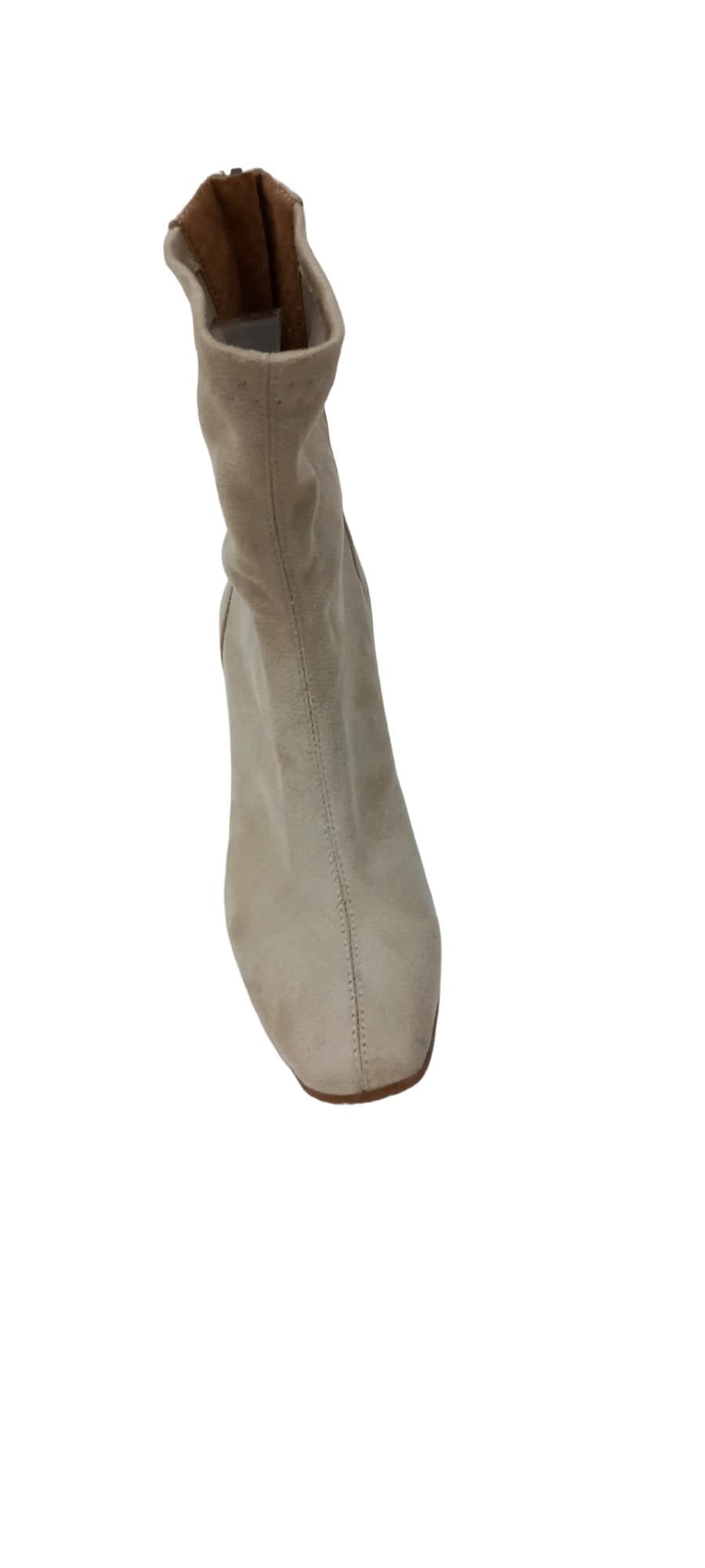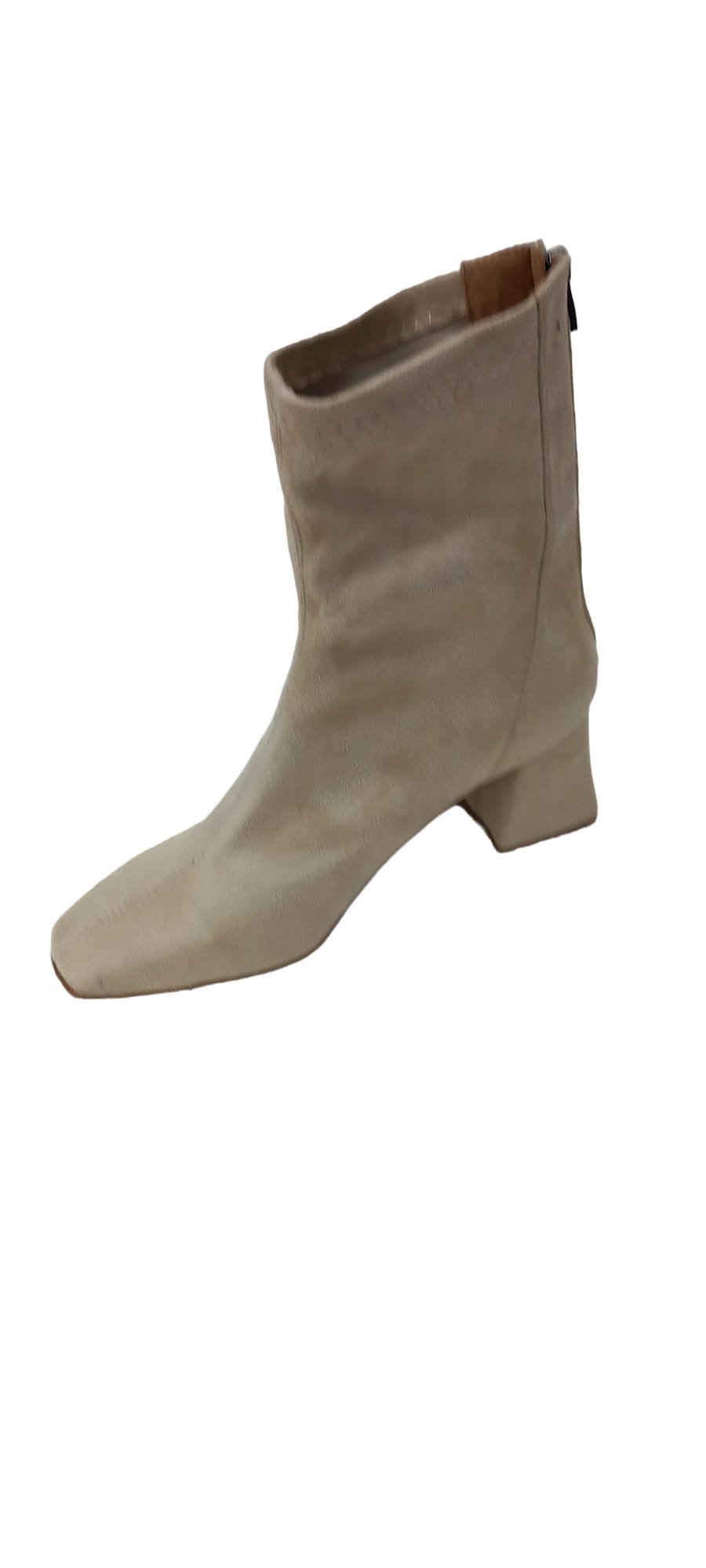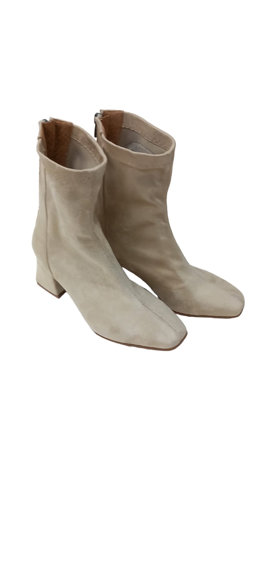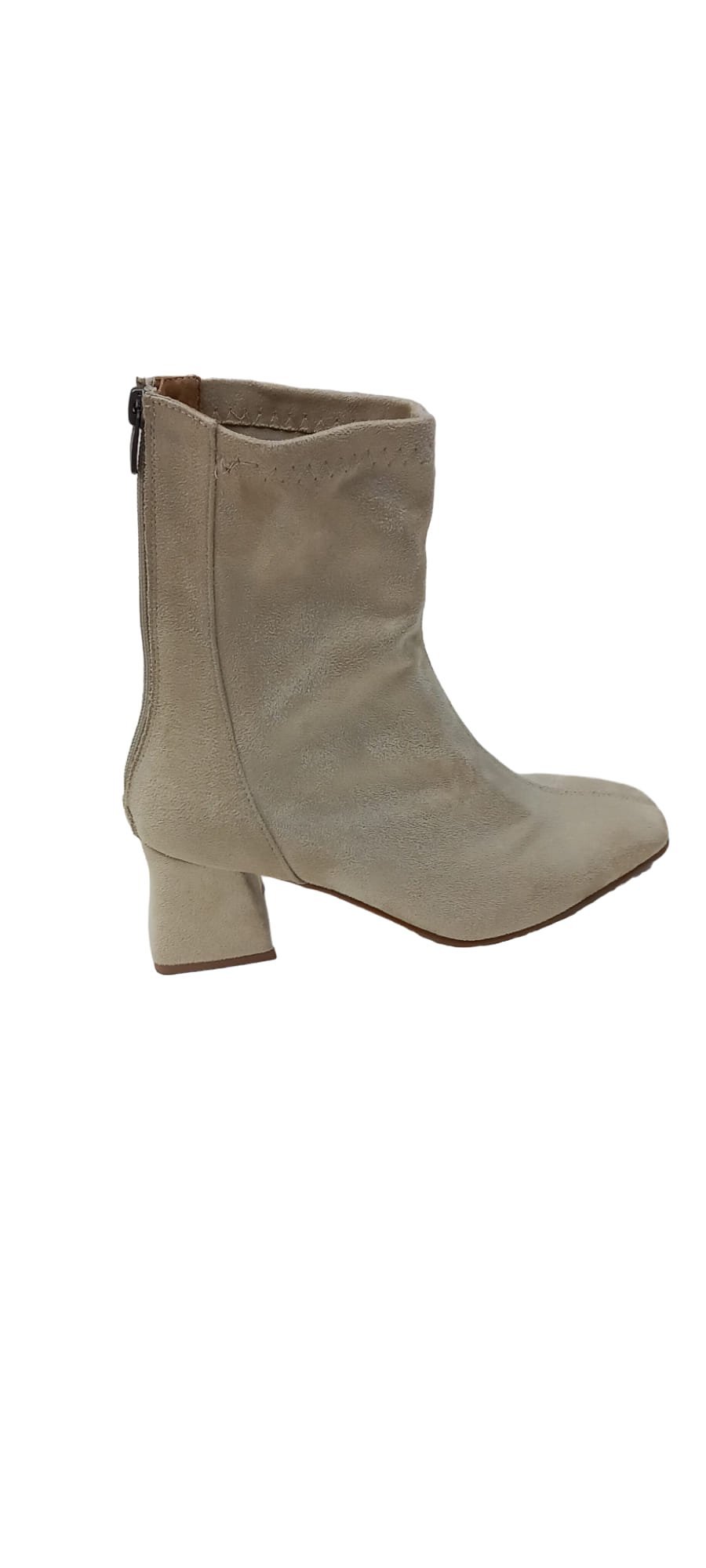 Jean, elbise veya eteklerle kombinlenebilen bu bej süet kısa topuklu bot, şehir şıklığından özel davetlere kadar birçok ortamda kullanılabilecek zamansız bir modeldir.