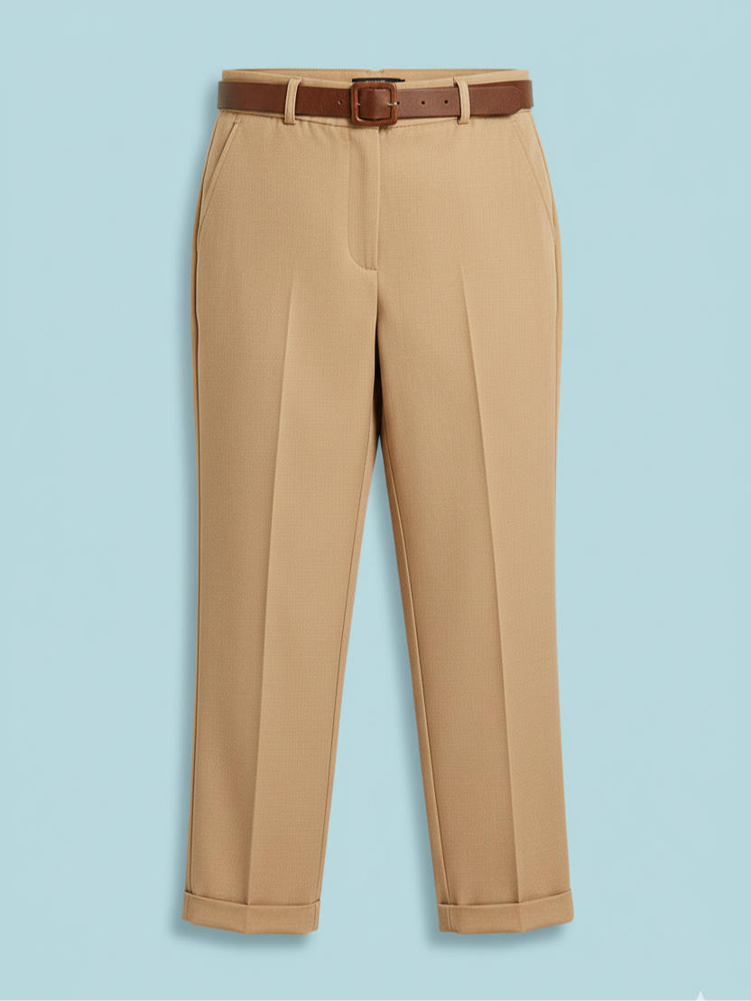 %70 pamuk, %25 polyester, %5 likra içeriğiyle hem tok duruşlu hem esnek yapıya sahiptir. Gabardin kumaşın dayanıklılığı ve bej rengin zamansız şıklığıyla ofisten günlük stile kadar her kombinle uyum sağlar. Yüksek bel, düz paça kesimiyle rahatlık ve şıklığı bir araya getirir.