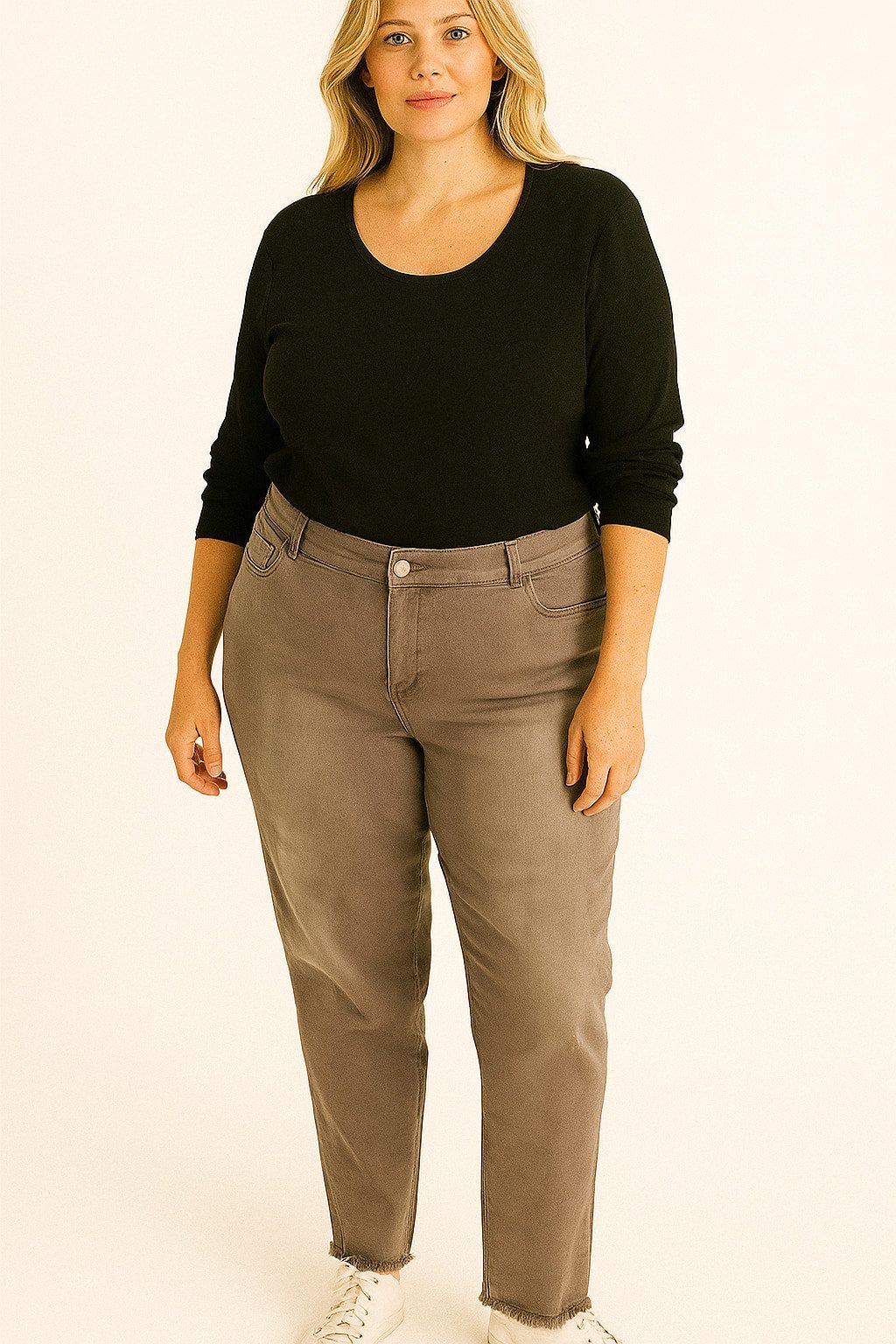 Büyük Beden Bej Kanvas Pantalon