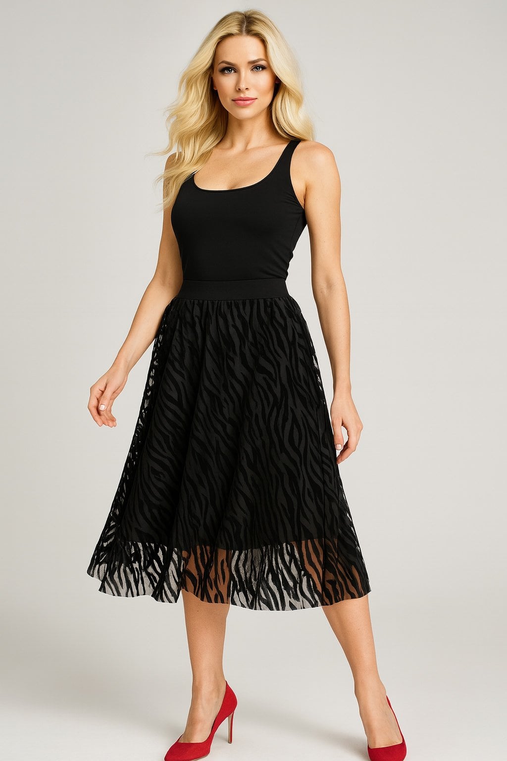Bu muhteşem kloş etek, büyük beden ve beli lastikli tasarımı ile rahat ve şık bir görünüm sunar. Tüllü detaylarıyla dikkat çeken bu etek, herhangi bir kombine şıklık katar. Özellikle özel günlerde veya günlük kullanımda rahatlıkla tercih edilebilir. Tarzınızı yansıtmak ve kendinizi özgür hissetmek istiyorsanız bu eteği mutlaka denemelisiniz.