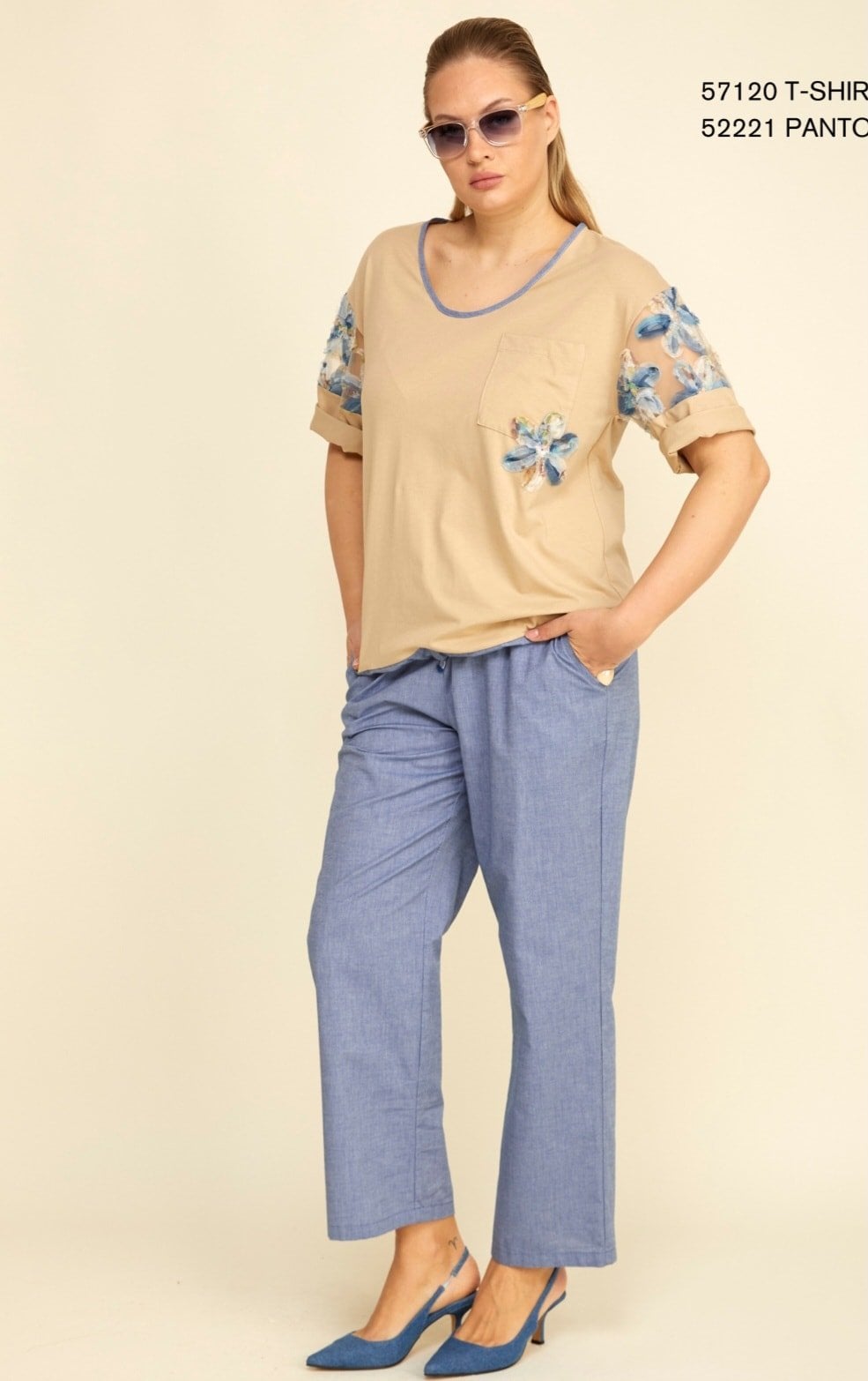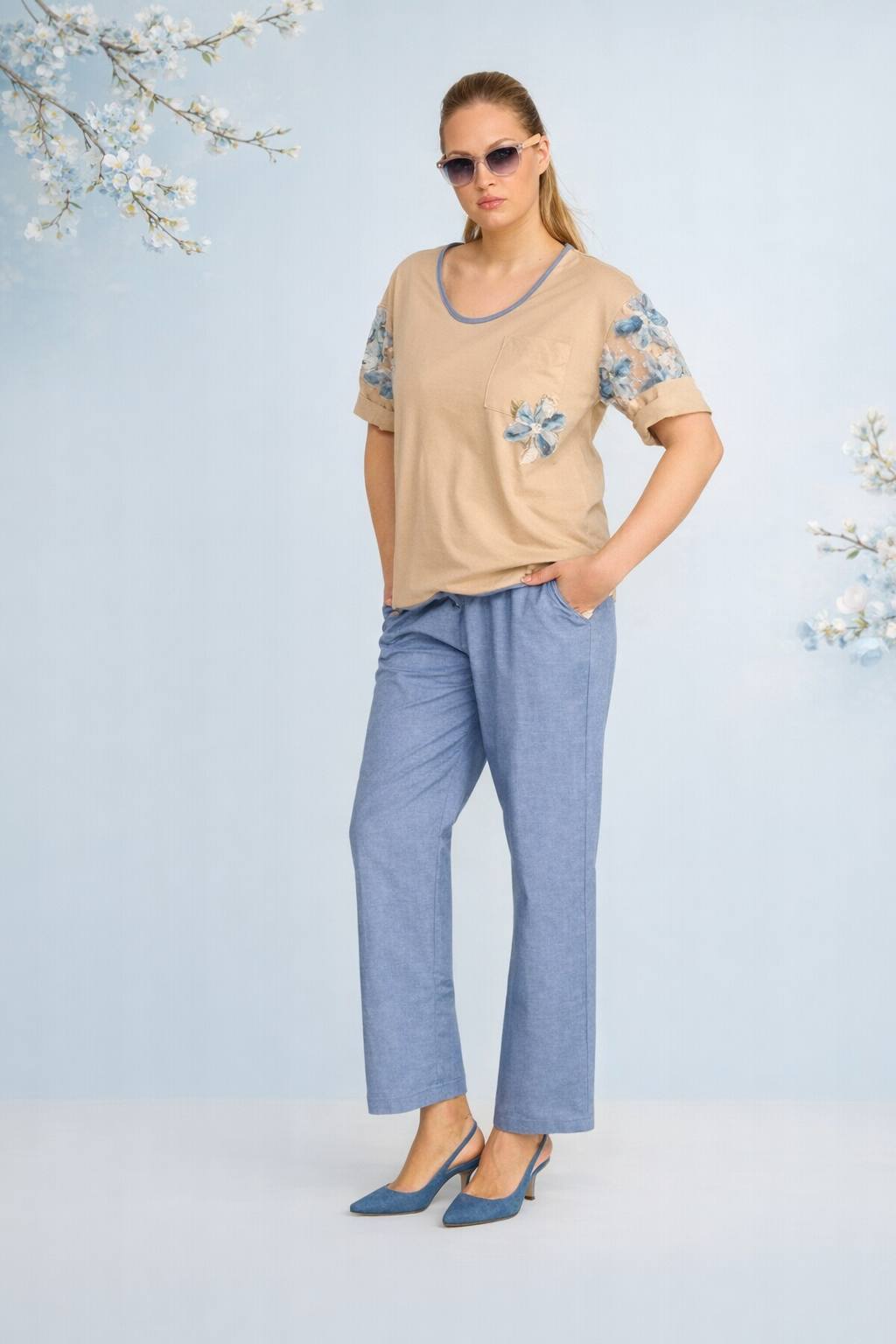 Büyük Beden Camel Rengi Cotton Kolları Esprili Viskon Bluz