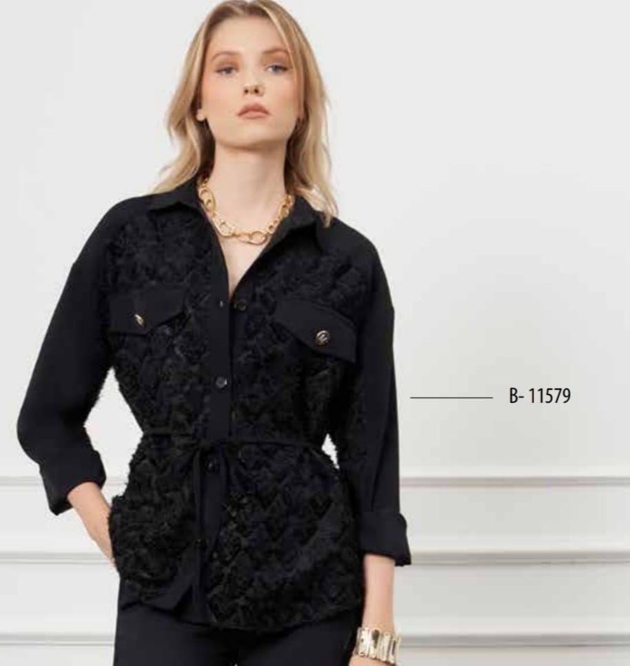 Büyük Beden Önü Dantal Yakalı Kumaş Gömlek Ceket