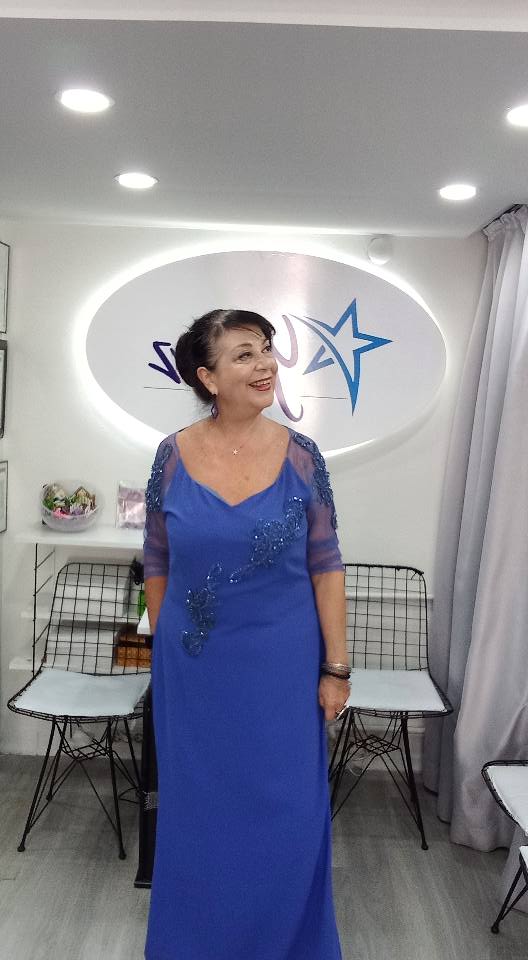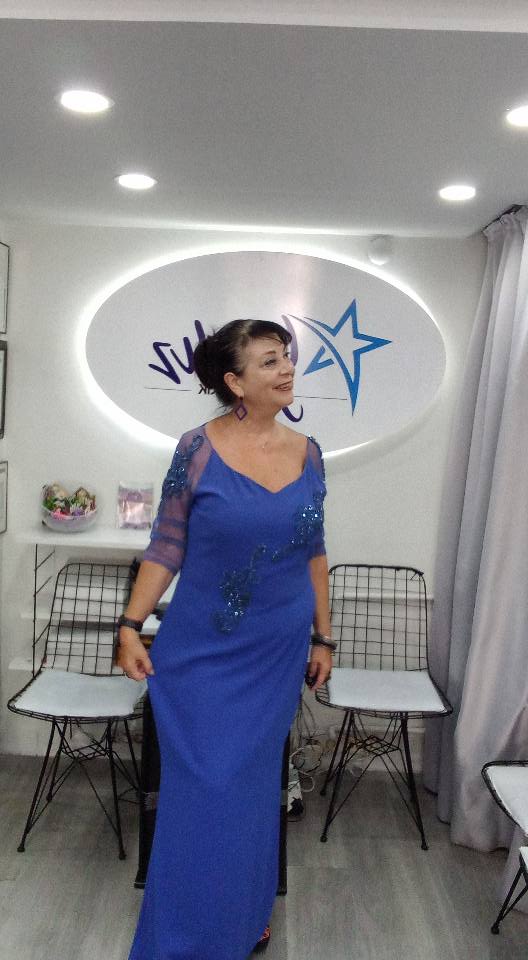 Büyük Beden Saks Rengi Şifon Taş İşlemeli Uzun Abiye Elbise