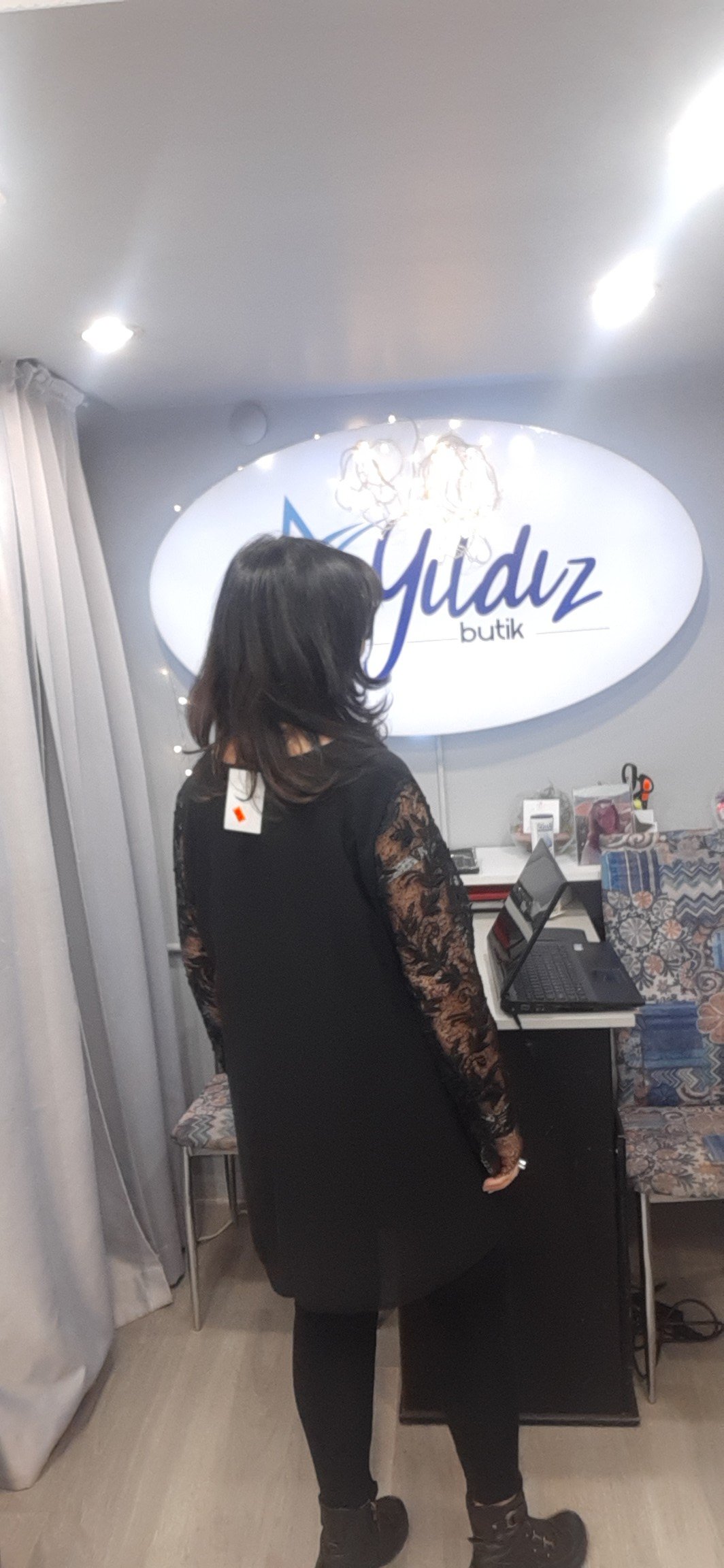 Büyük Beden Siyah Şifon Kolları Küpür Dantel Bökümlü bluz