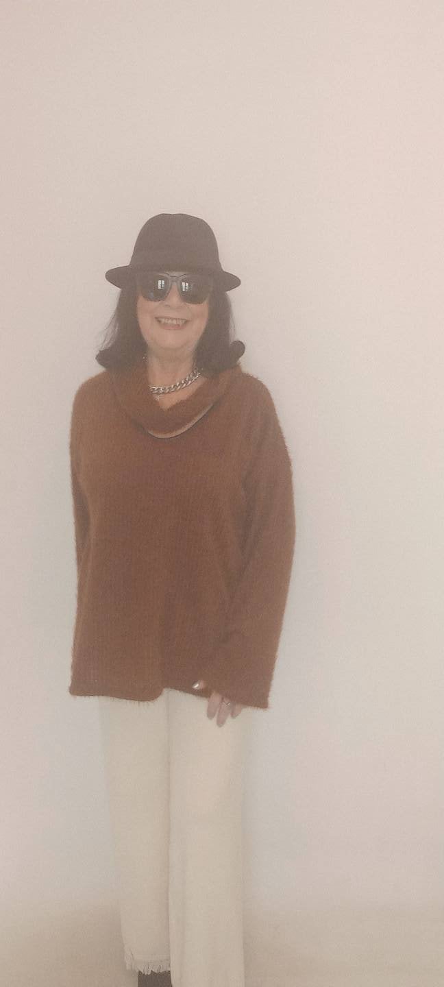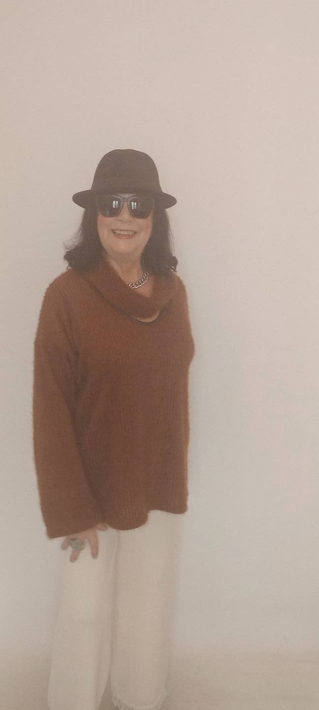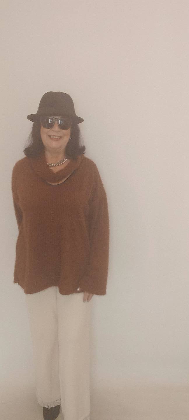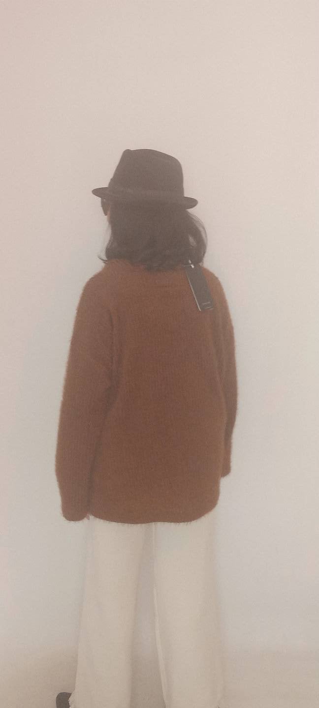 Büyük Beden Taba Degaje Pencereli Yaka Tüylü Yumuşacık Triko Kazak