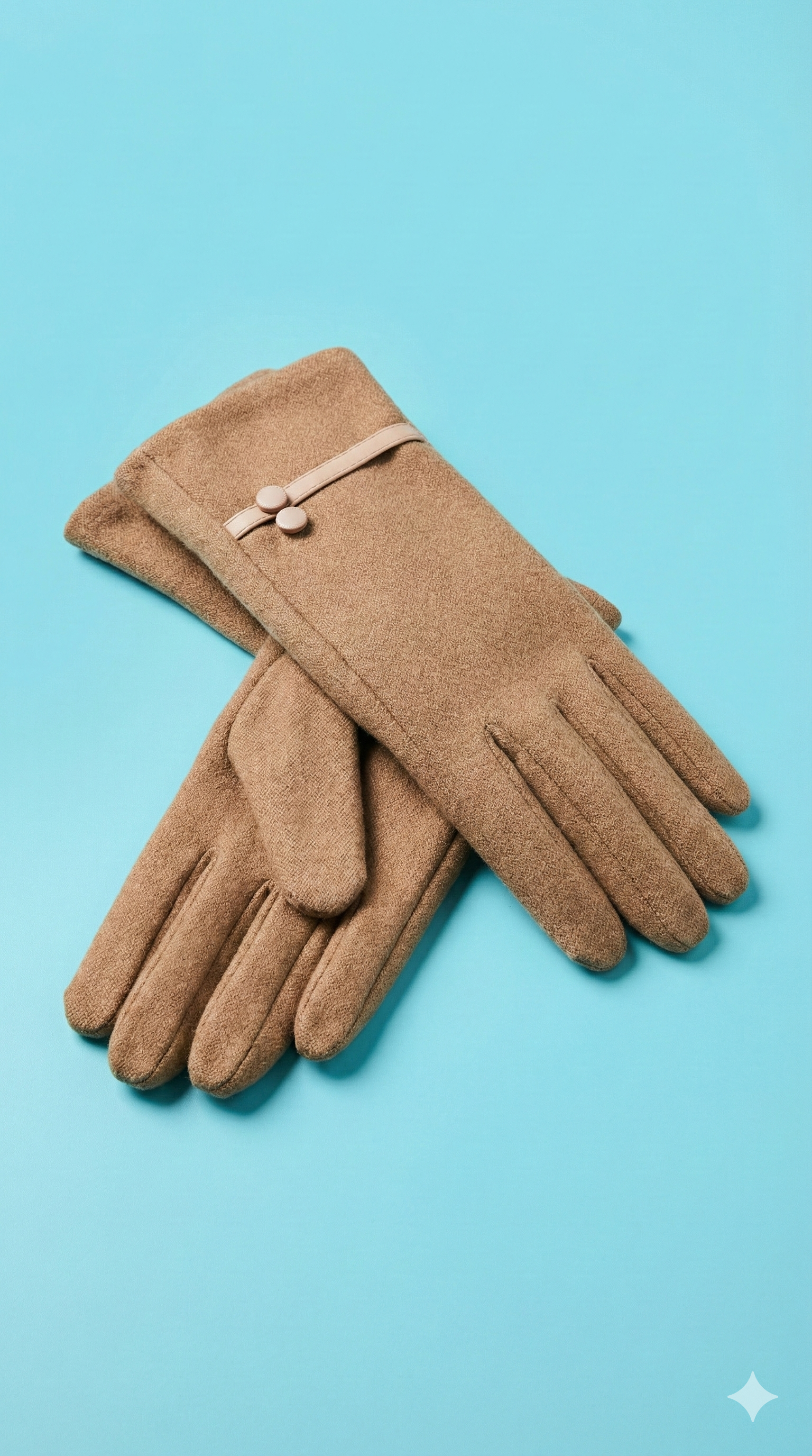 Camel Rengi Bantlı Miflonlu Kadın Eldiven
