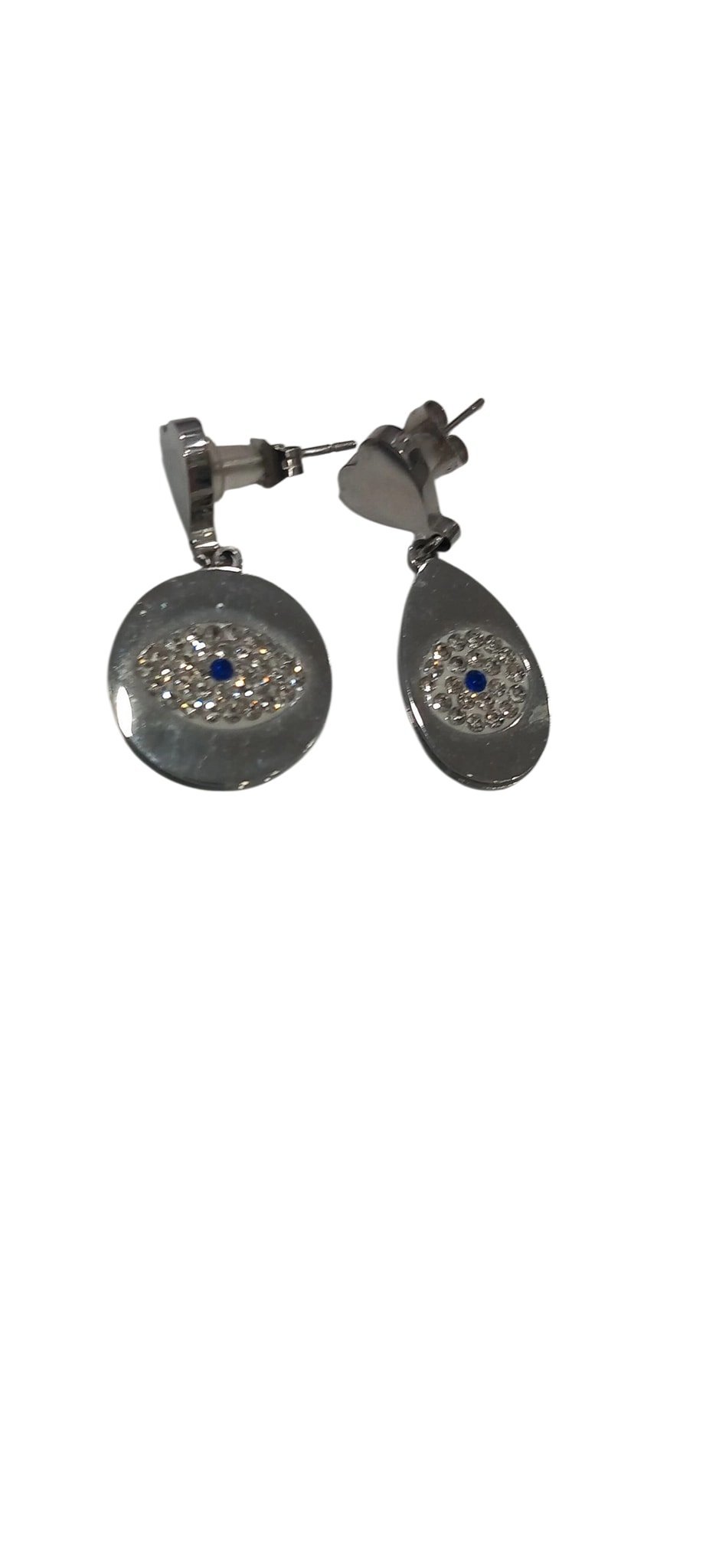 Çelik Gümüş Rengi Asimetri Göz Figürlü Küpe