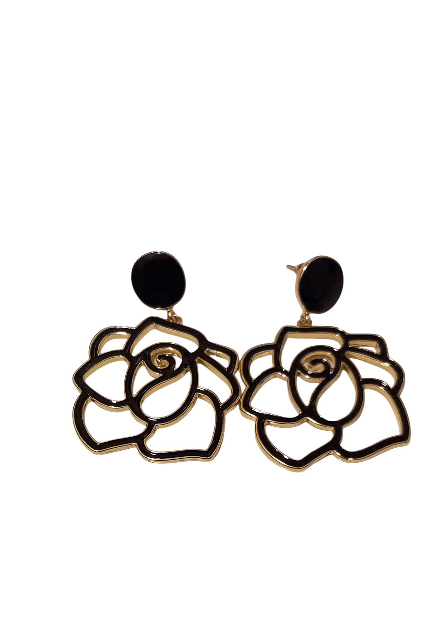Dore Siyah Çiçek Motifli Büyük Sallantılı Küpe