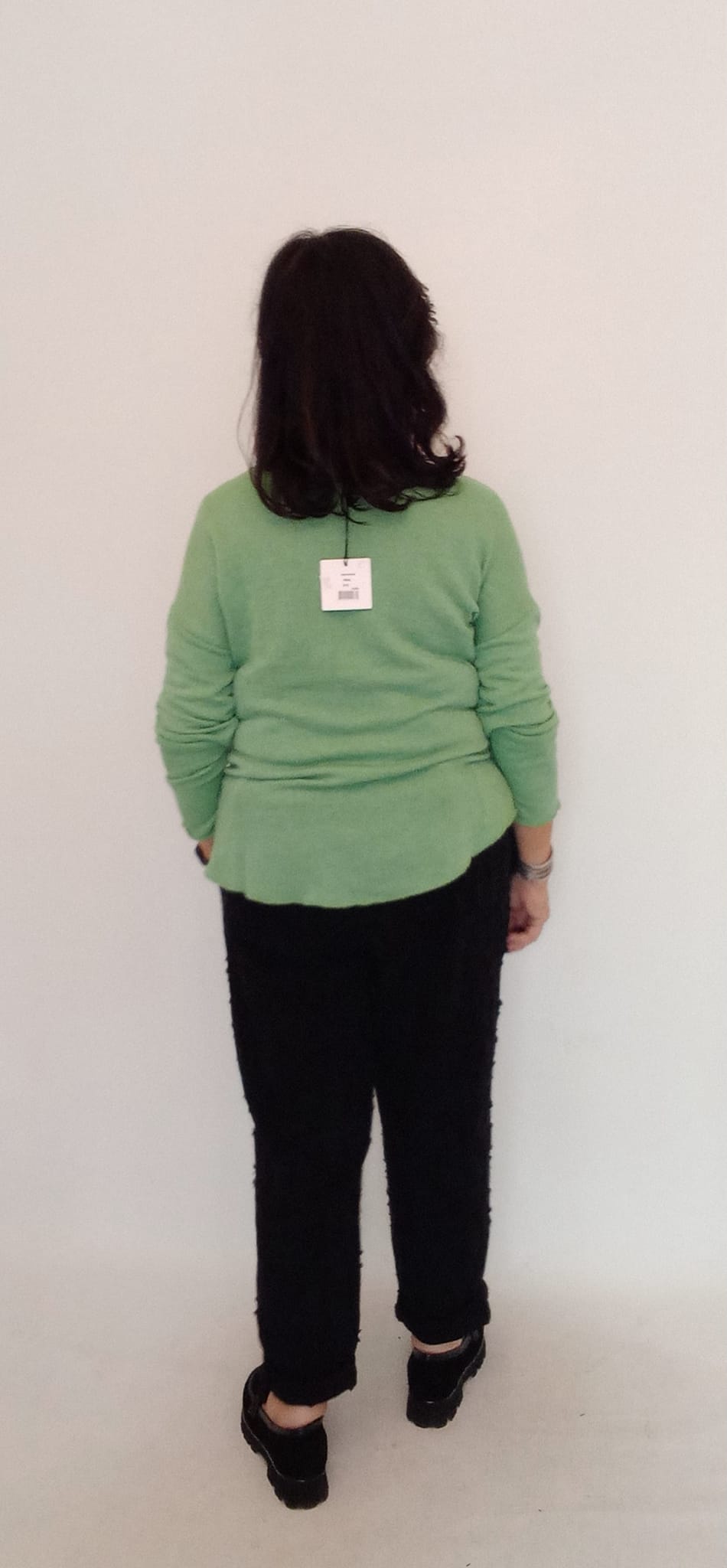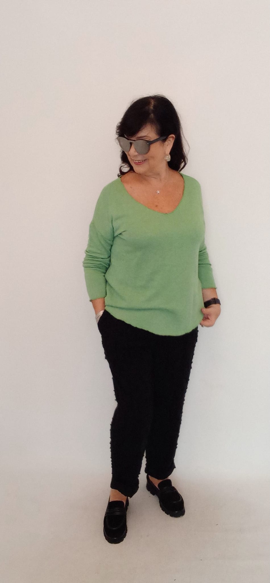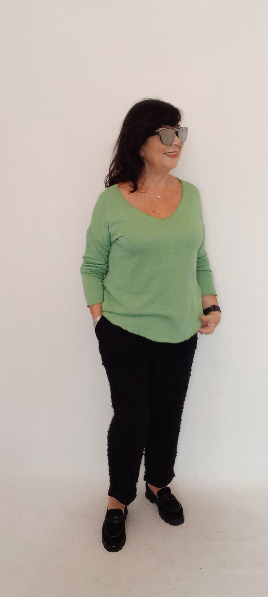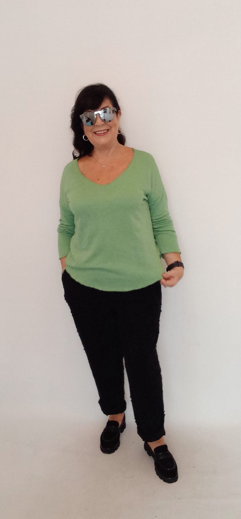 Fıstık Yeşili V Yaka Cotton Triko Bluz