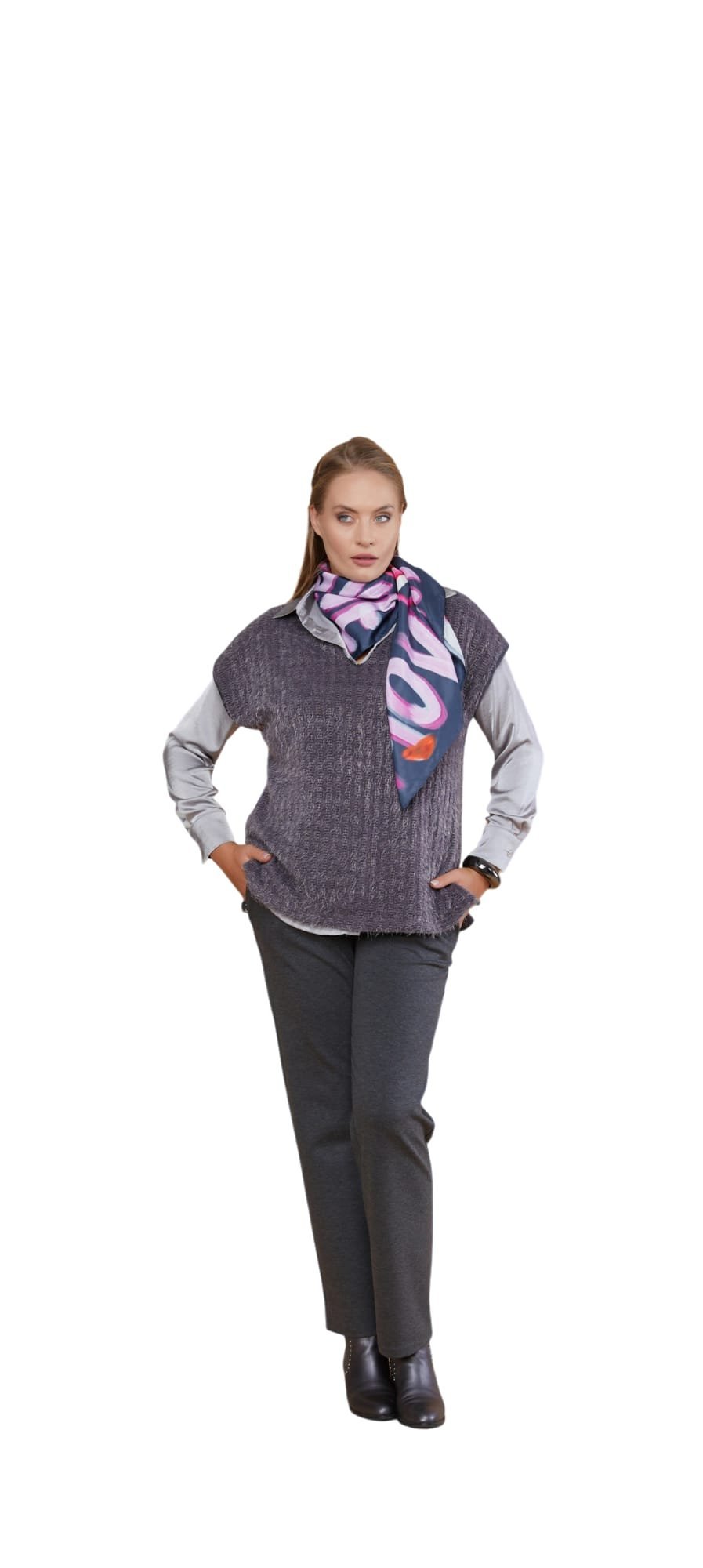 Füme Rengi Büyük Beden Shöni Kumaş Suveter