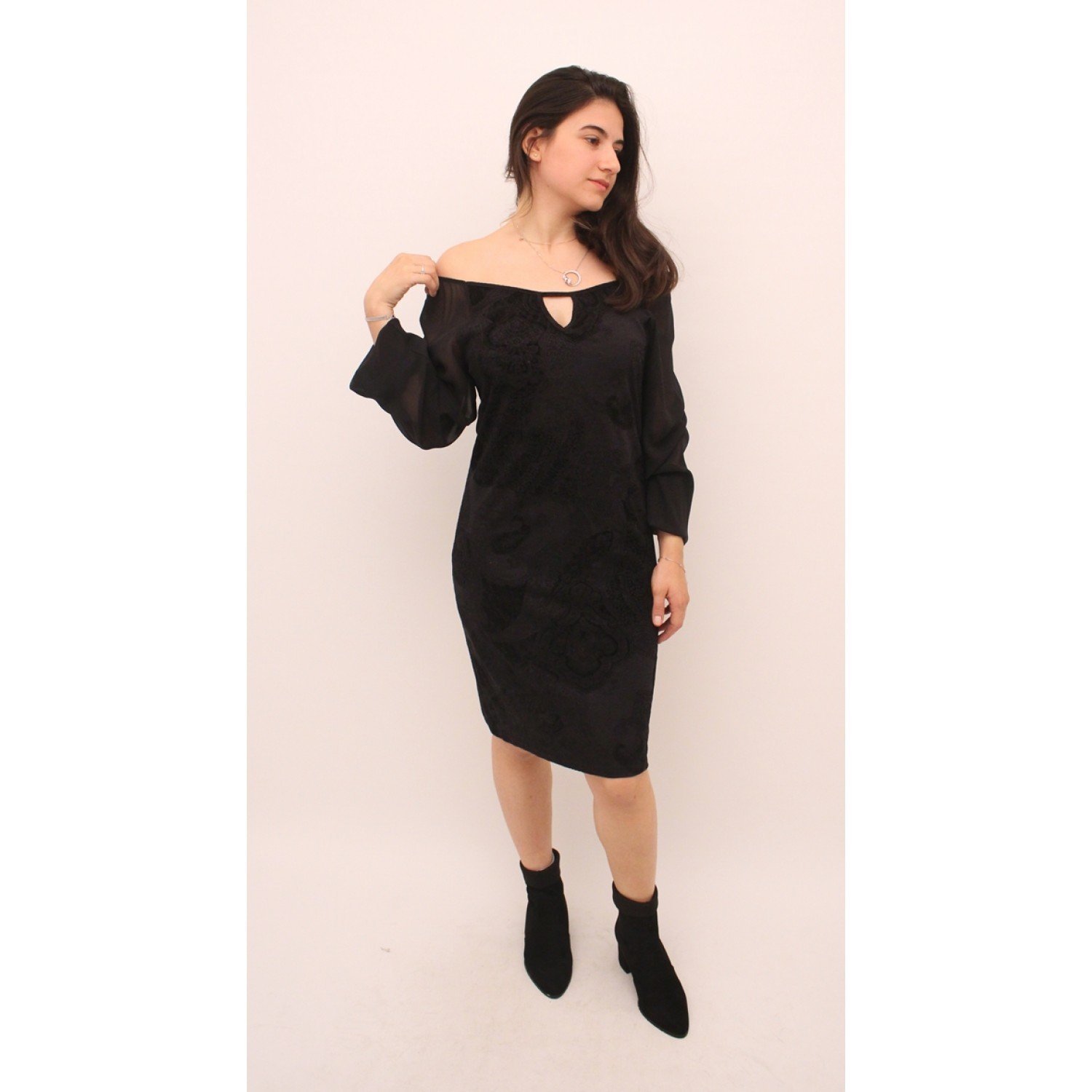 %70 polyester, %25 viskon, %5 elastan içeriği sayesinde hafif, akıcı ve vücuda uyumlu bir duruş sağlar. Kayık yaka kesimiyle zarif bir görünüm sunarken siyah tonu, her ortamda şıklığın anahtarı olur. Düğün, davet ve özel gecelerde favori parçanız olmaya aday.