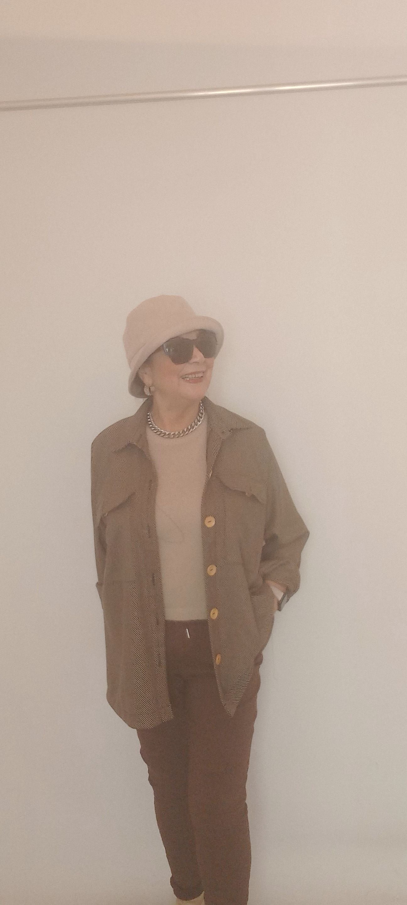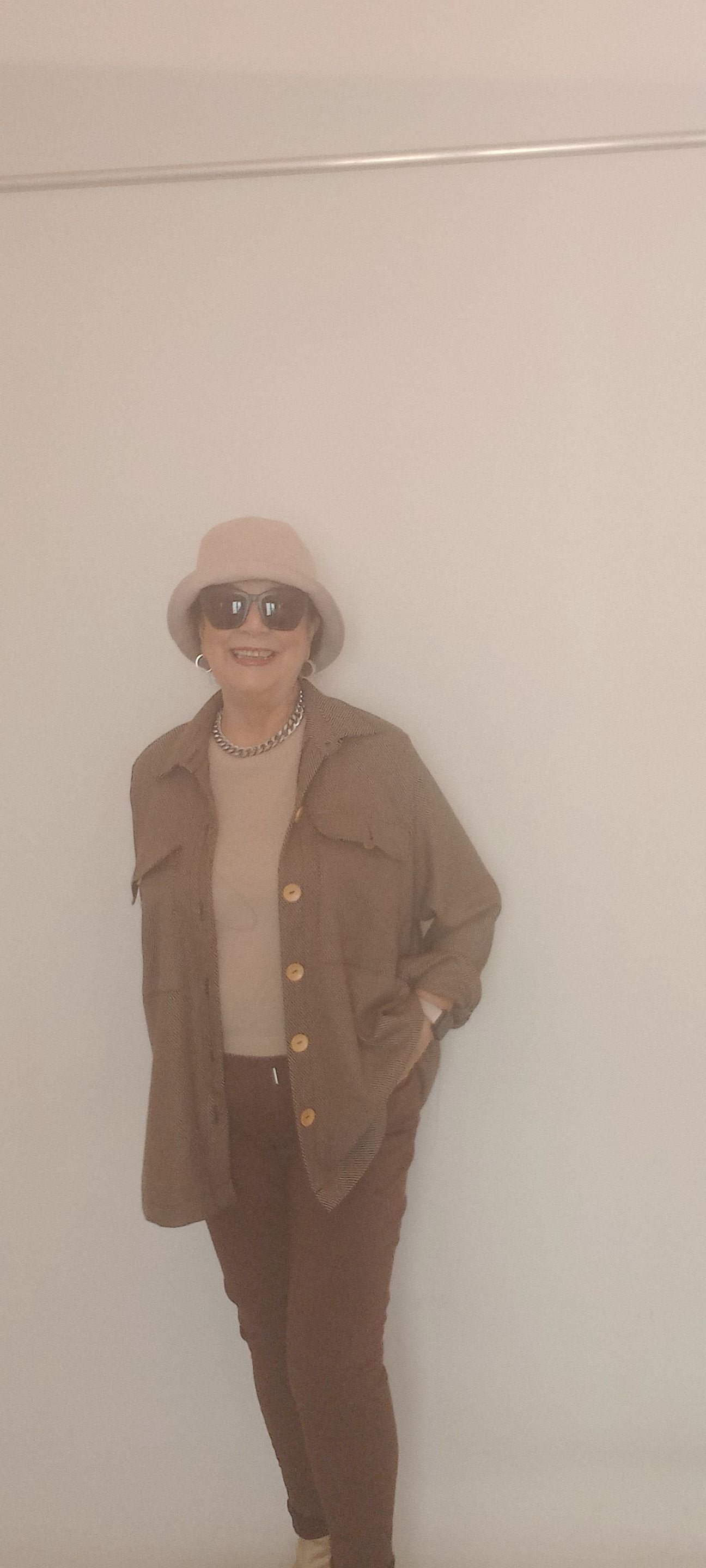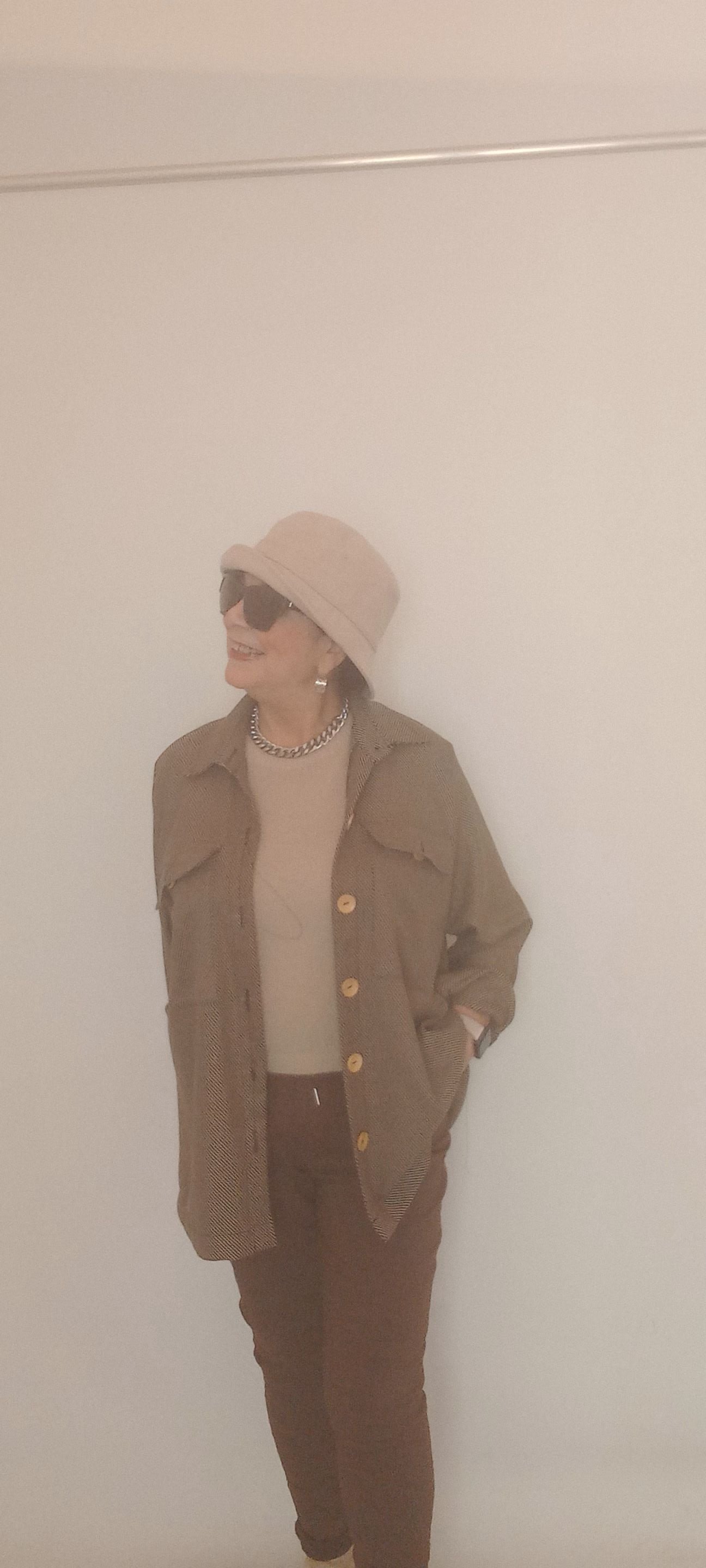 Pantolon, etek ya da jeanlerle kombinlenebilen bu camel safari gömlek, kış ve sonbahar kombinlerinde stilinizi güçlendirecek çok yönlü bir parçadır.