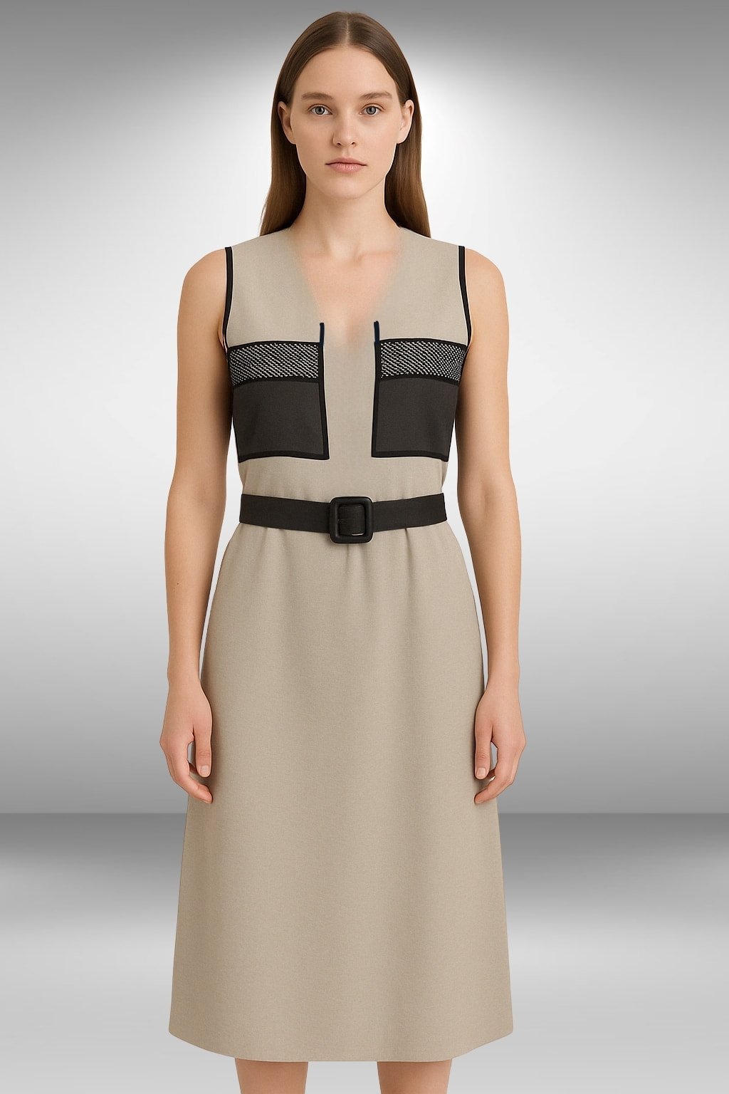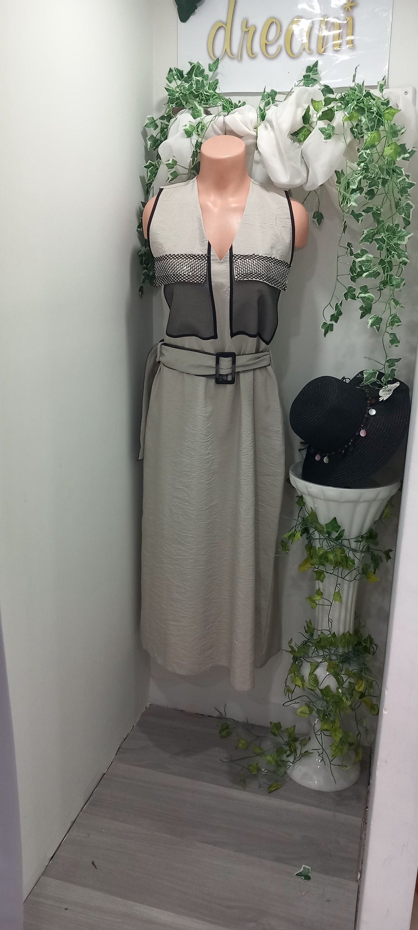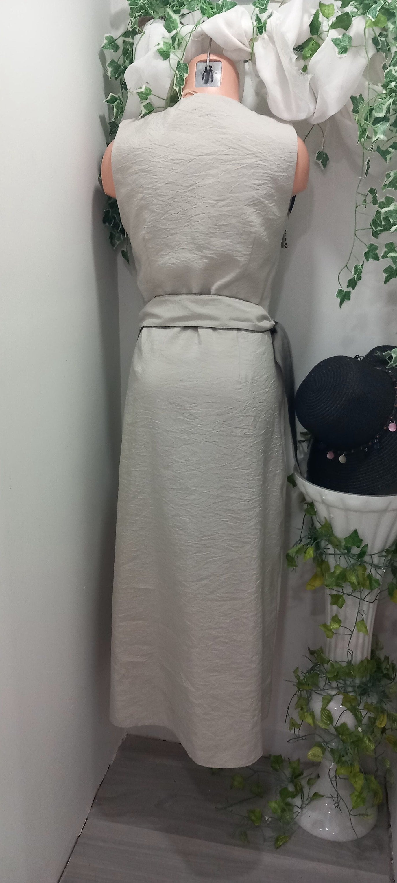 Bu siyah taşlı uzun elbise, şıklığı ve rahatlığı bir arada sunuyor. Grej rengi kolsuz tasarımı ve önünde bulunan cepleri ile dikkat çekiyor. Zarif detayları ve modern kesimi ile her şıklıkta rahatlıkla tercih edebileceğiniz bir parça. Gardrobunuzun vazgeçilmezi olmaya aday.