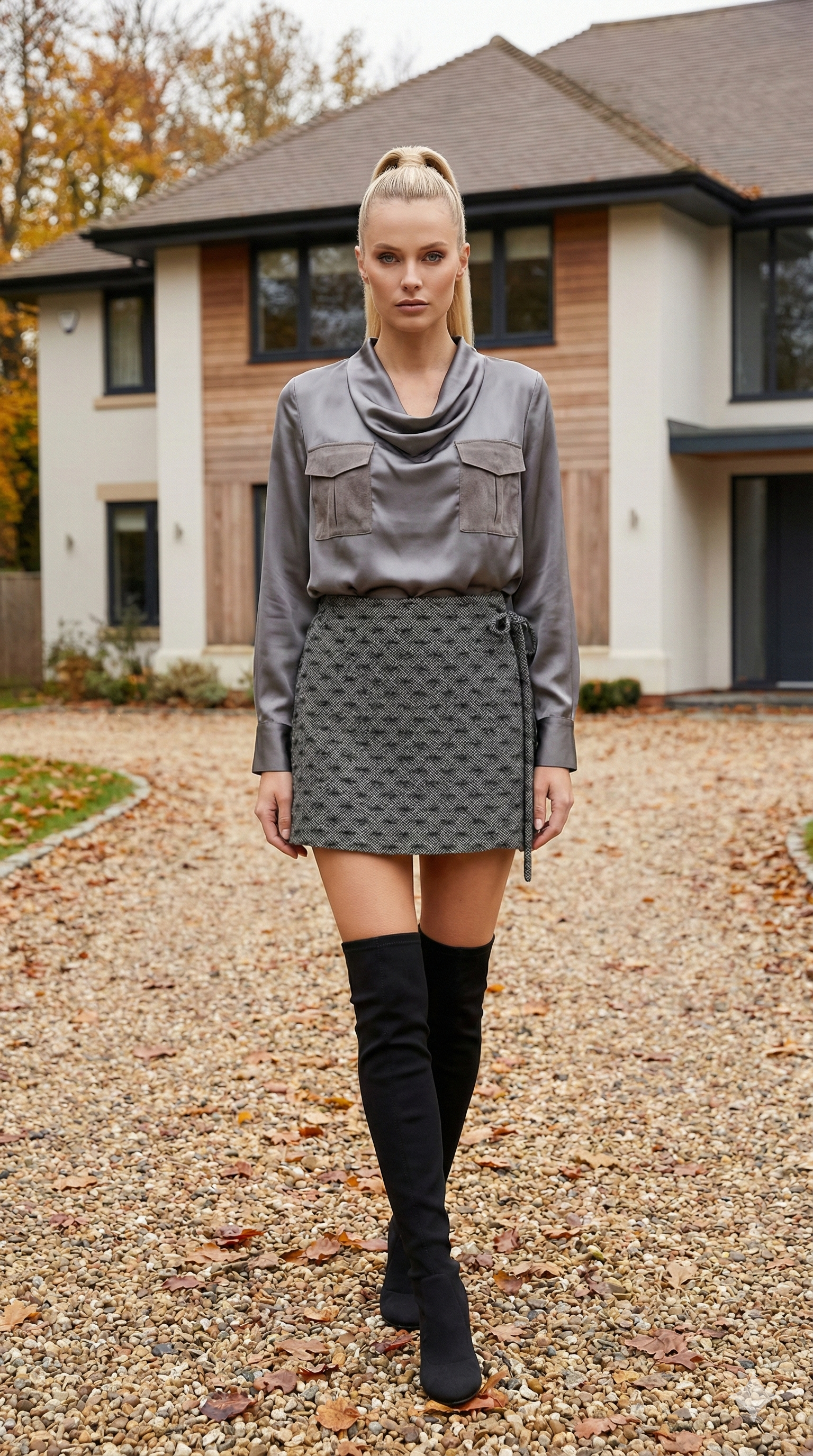 Gri Desenli Anvolop Mini Etek