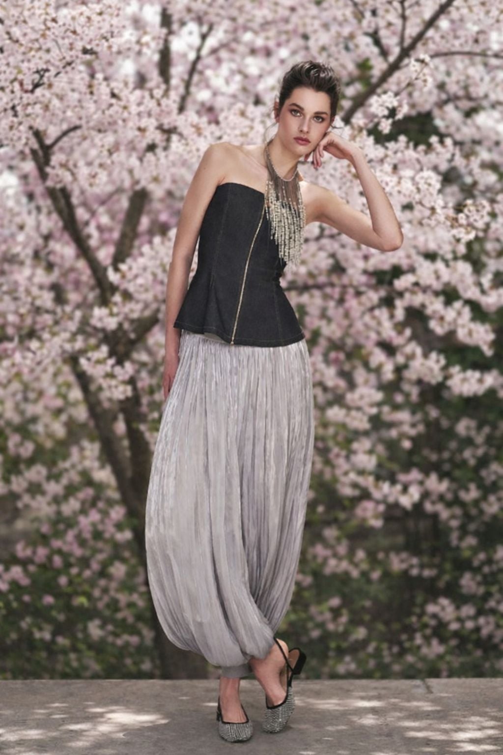Gri Dökümlü Kumas Gümüş Geçişleri Olan Şalvar