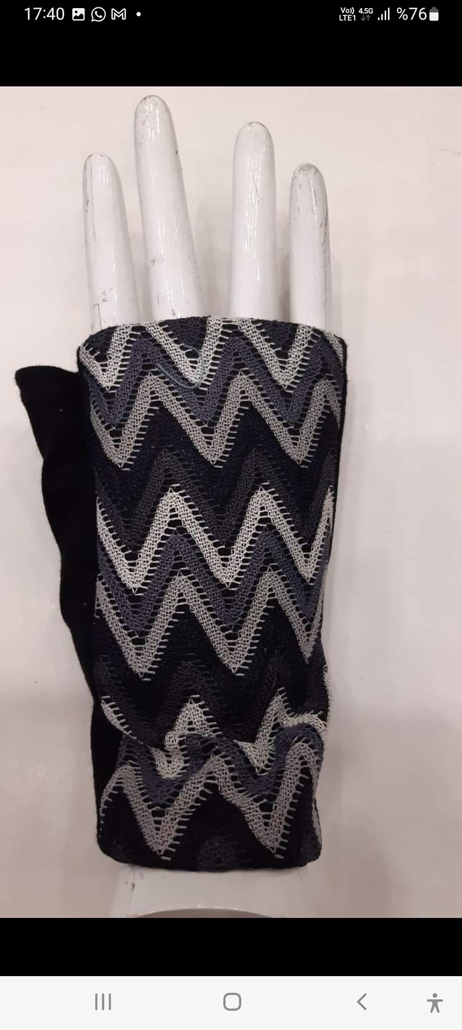 Gri Siyah Diagonal Çizgili Parmaksız Eldiven