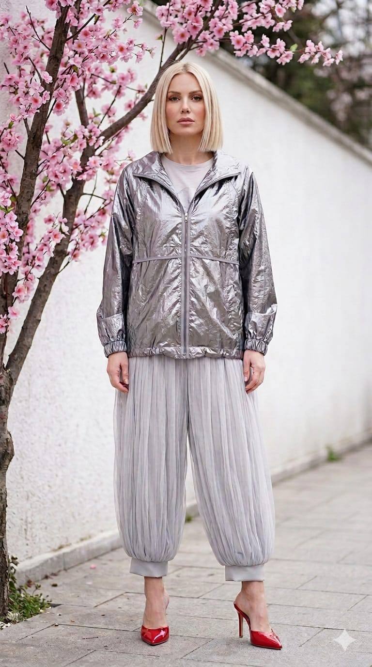Gümüş Rengi İnce Rüzgarlık