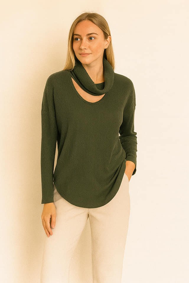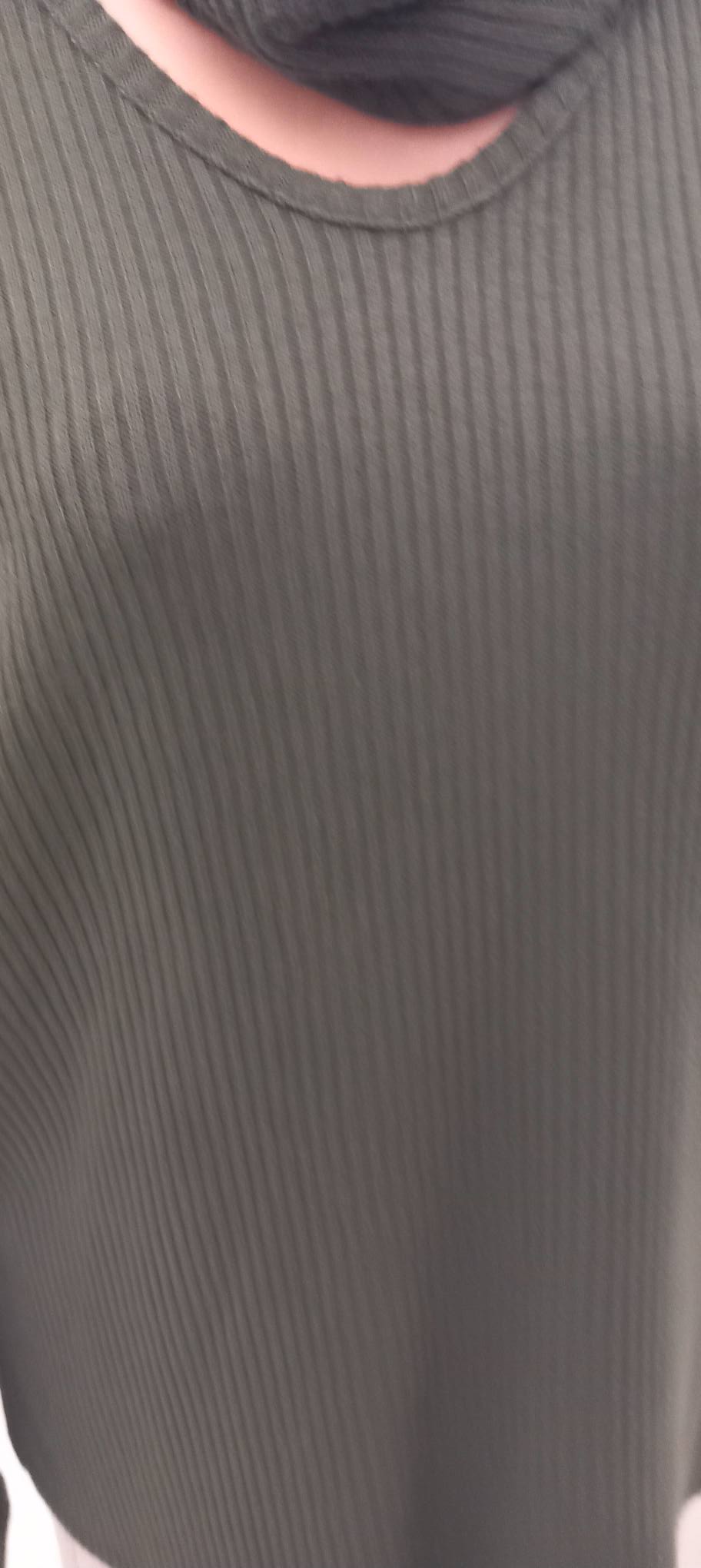Haki Degaje Yaka Pencereli Yollu Triko Tunik