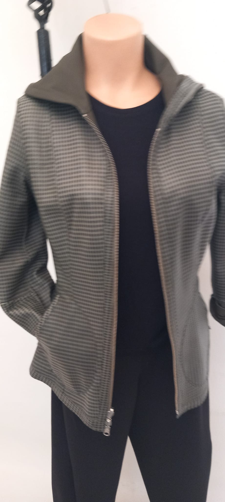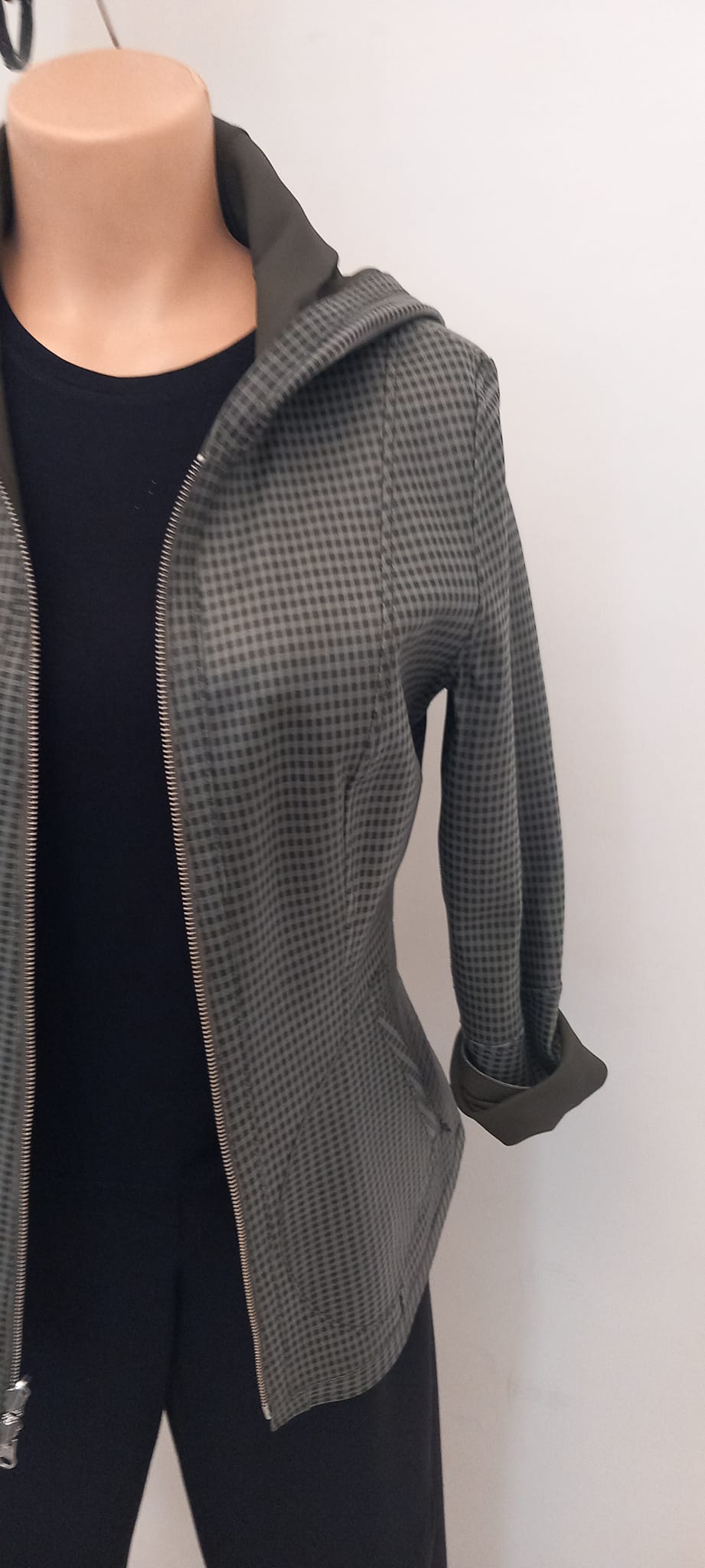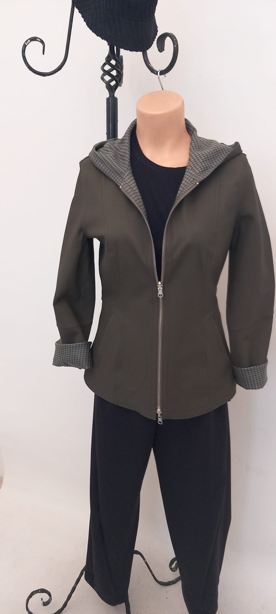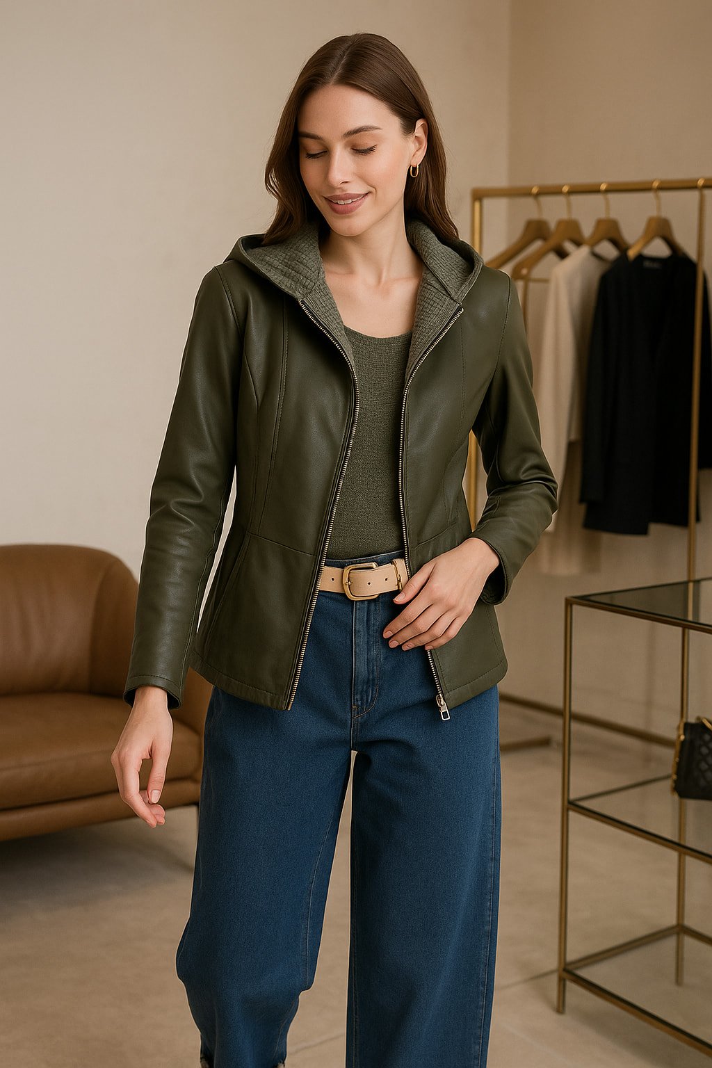 Haki Rengi Hakiki deri Çift Taraflı Fermıuarlı Ceket