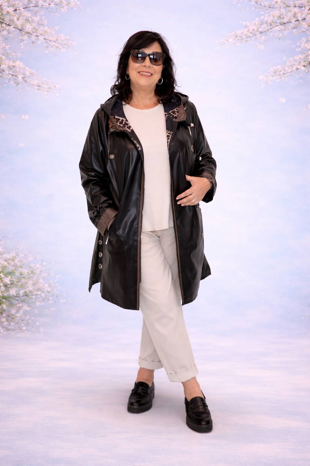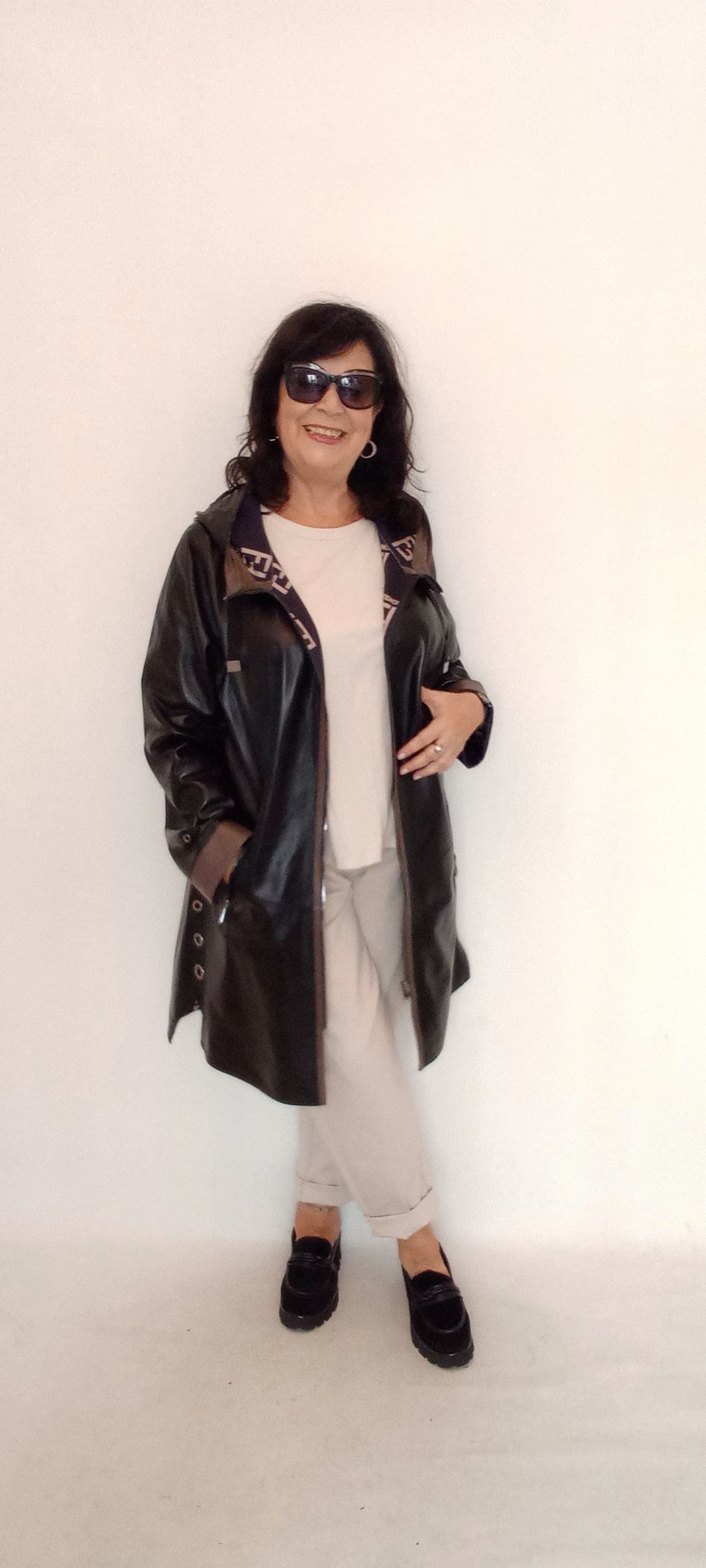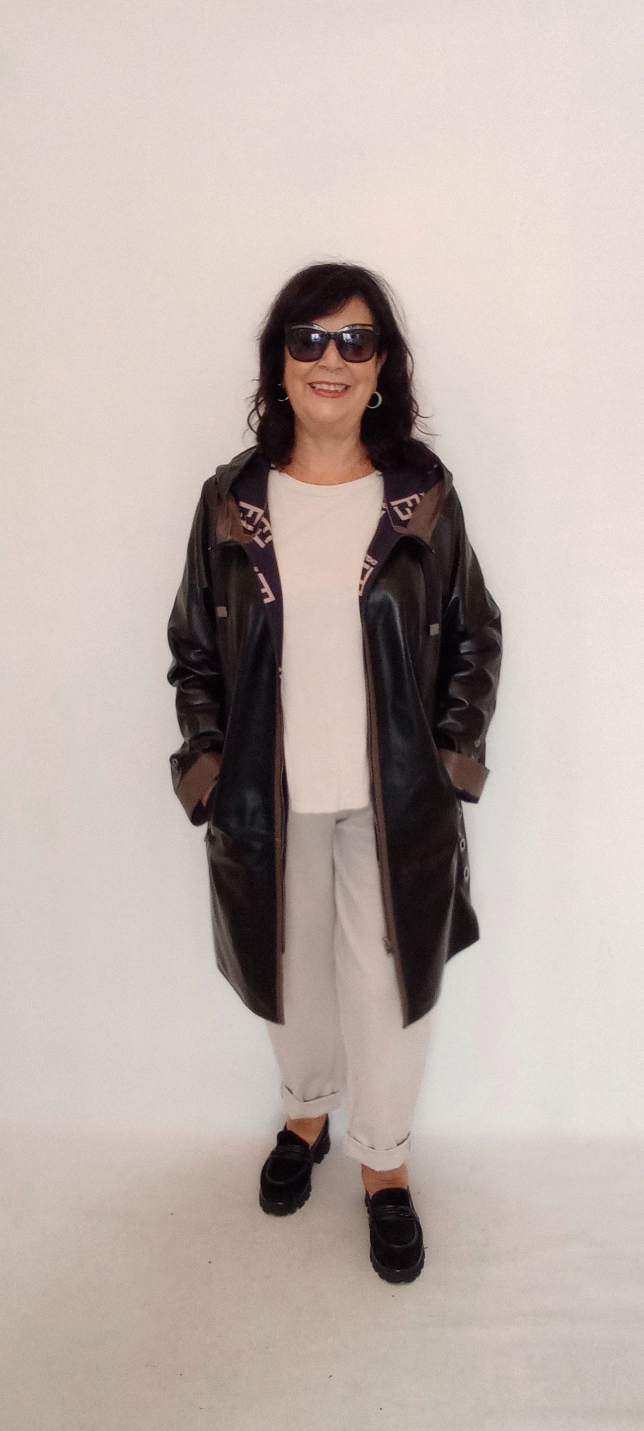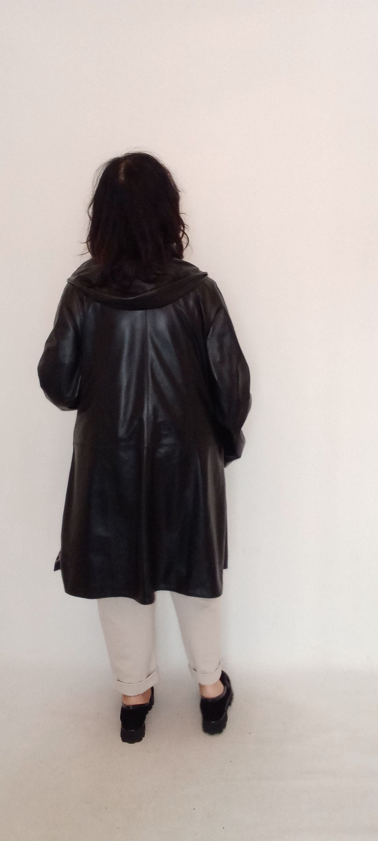 Hakiki Deri Kapüşonlu Çift Taraflı Kaban