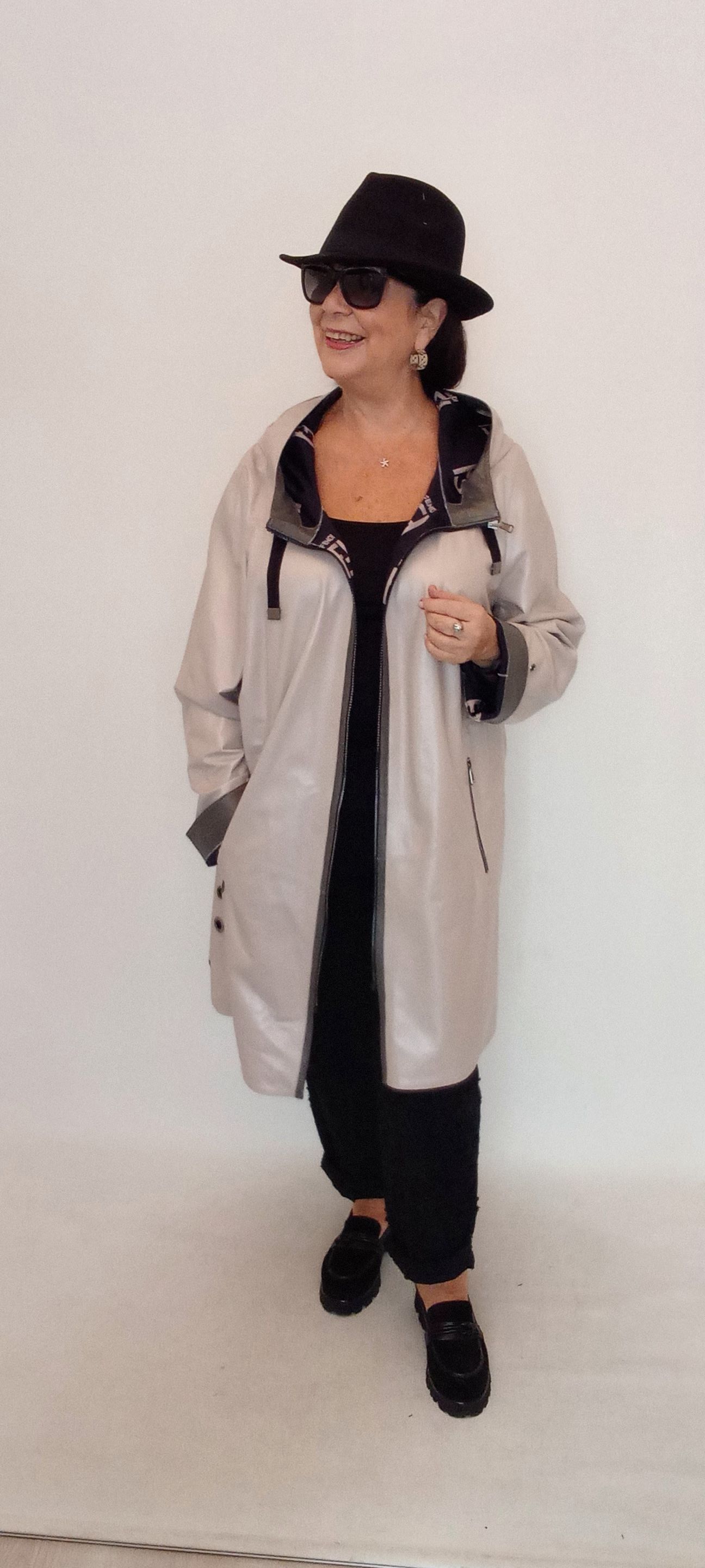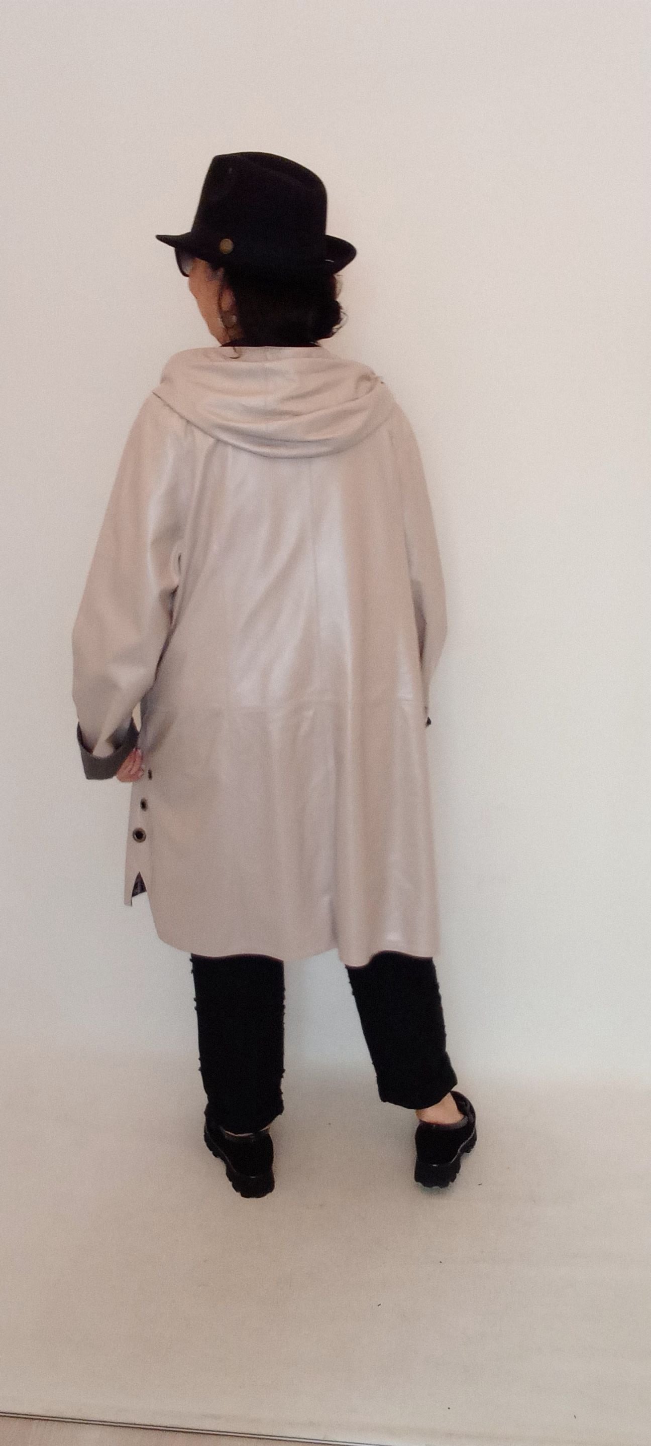 Hakiki Deri Kemik Rengi Sedef Kapüşonlu Çift Taraflı Pardesü Havasında Kaban