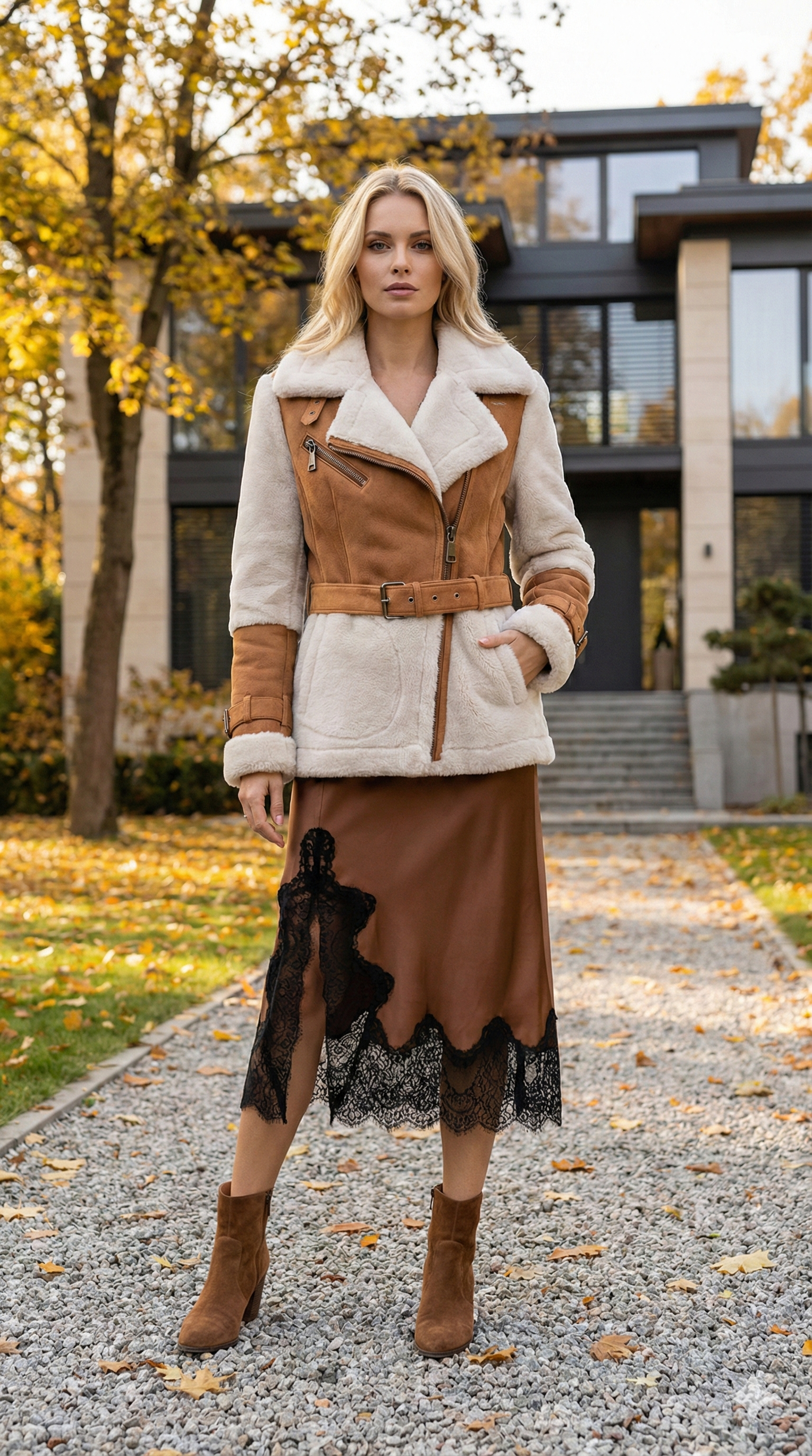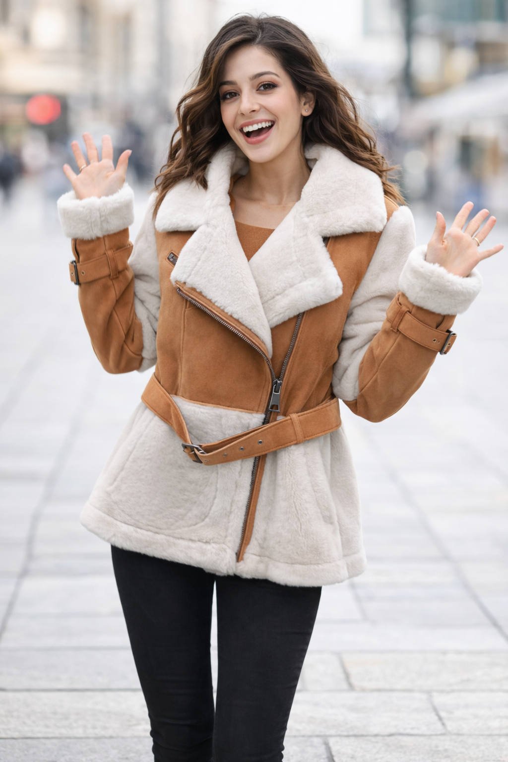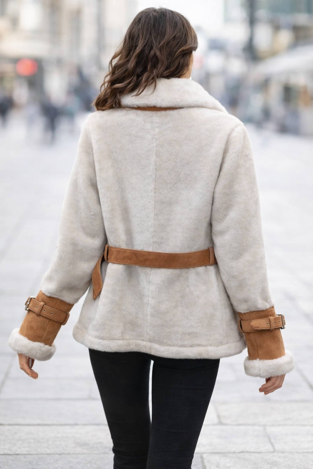 Hakiki Napa Deri Kürklü Camel Rengi Kaban