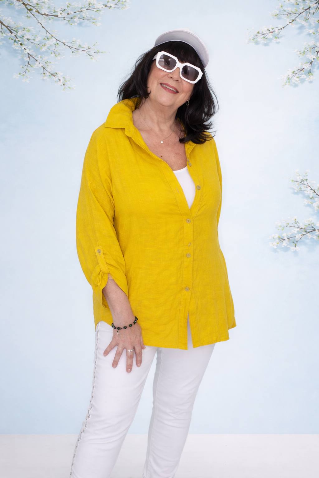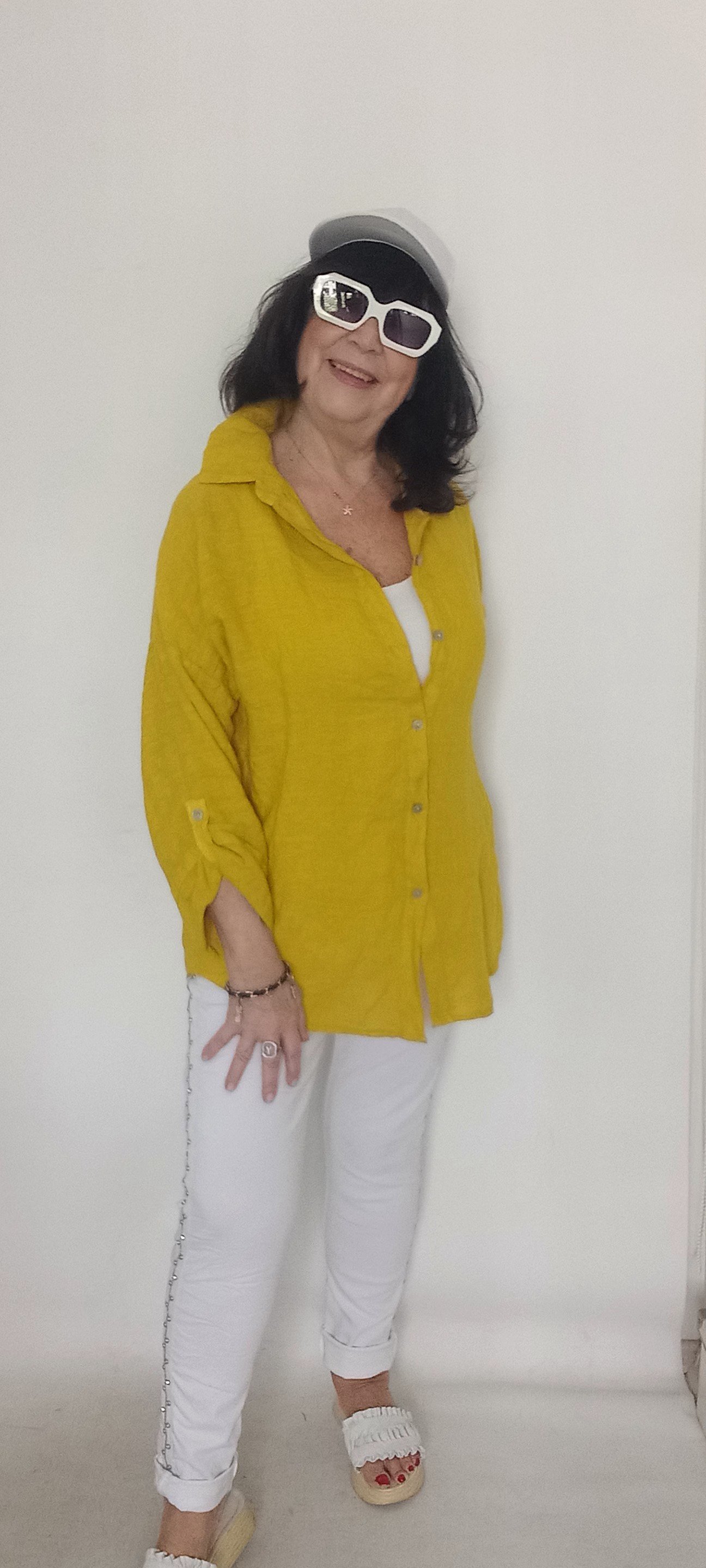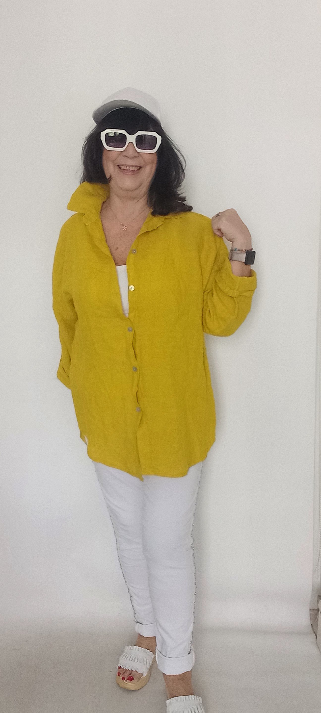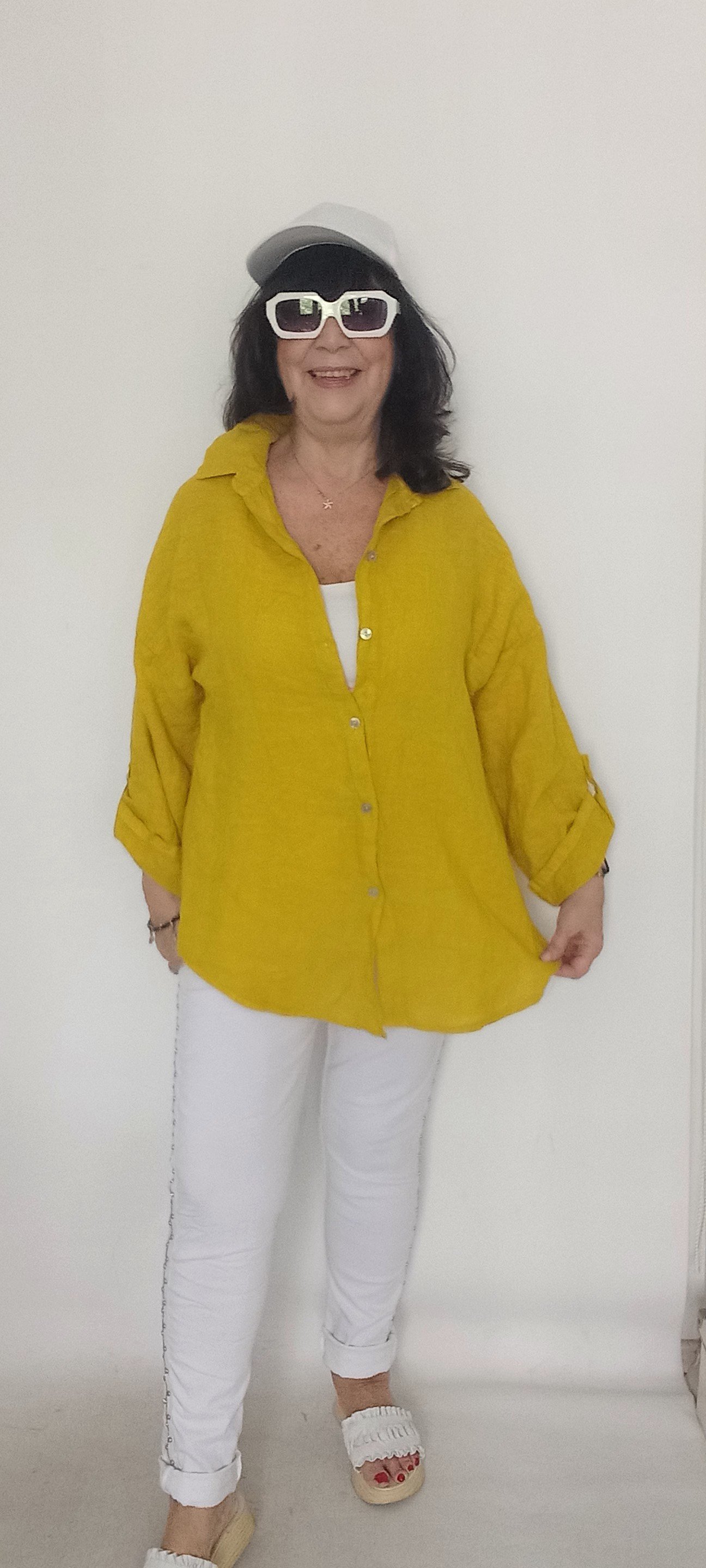 Hardal Rengi İtalyan Keten Salaş Gömlek