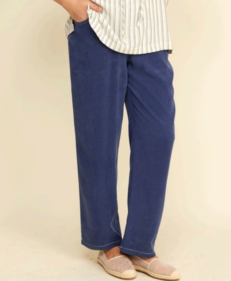 İndigo Mikro Dökümlü Kumaş Pantalon