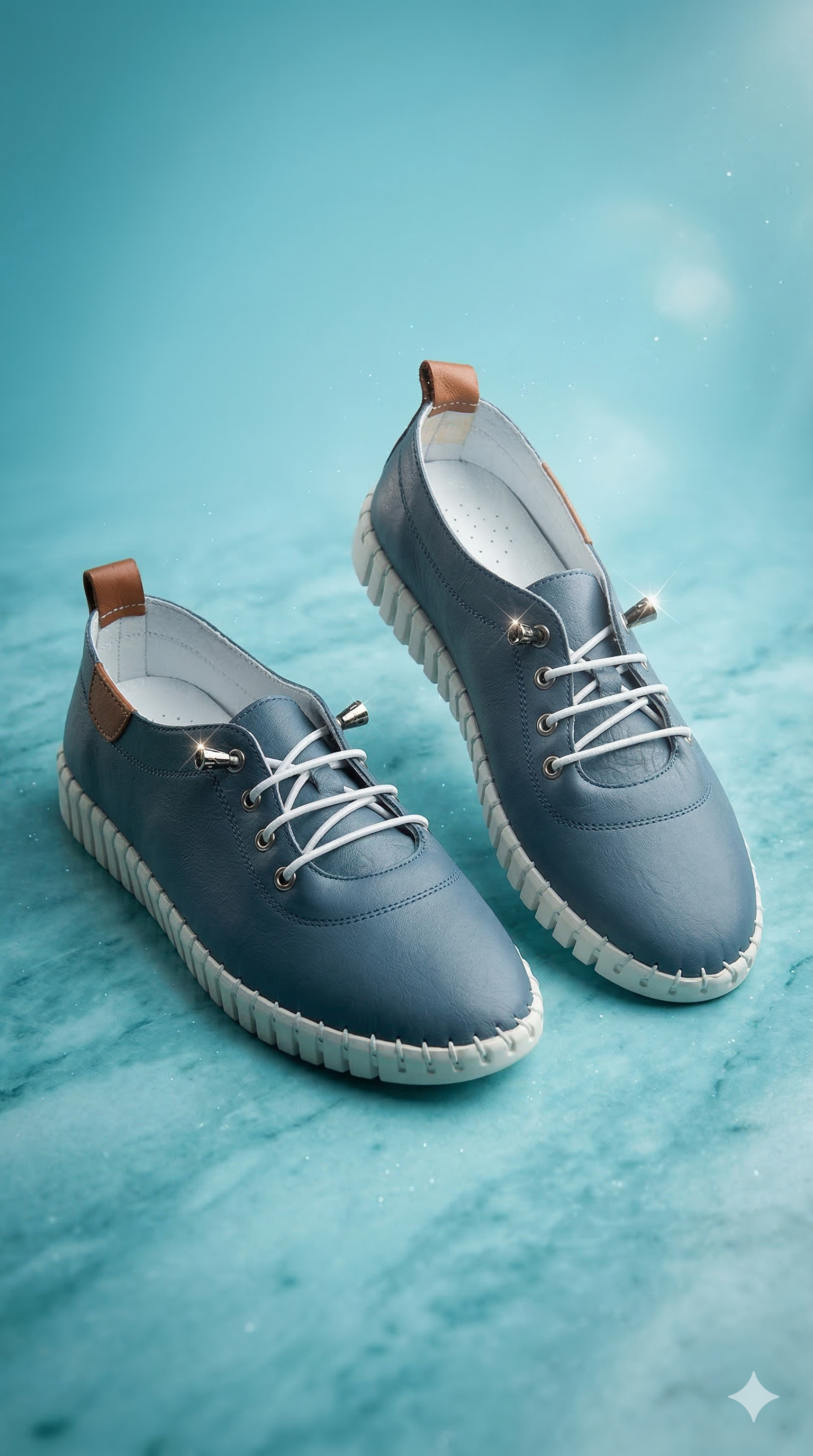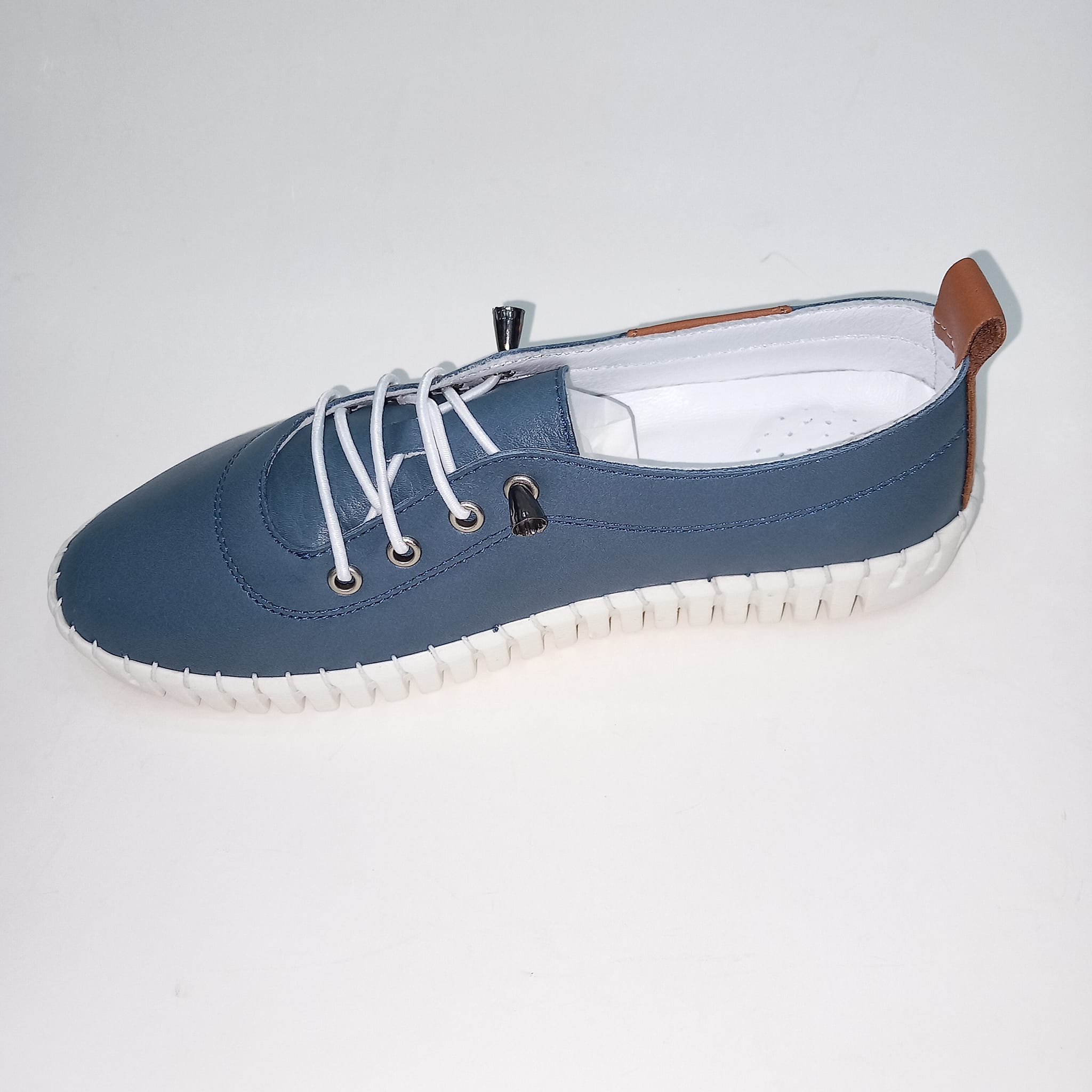 İndigo Rengi Hakiki Deri Sneacer Ayakkabı