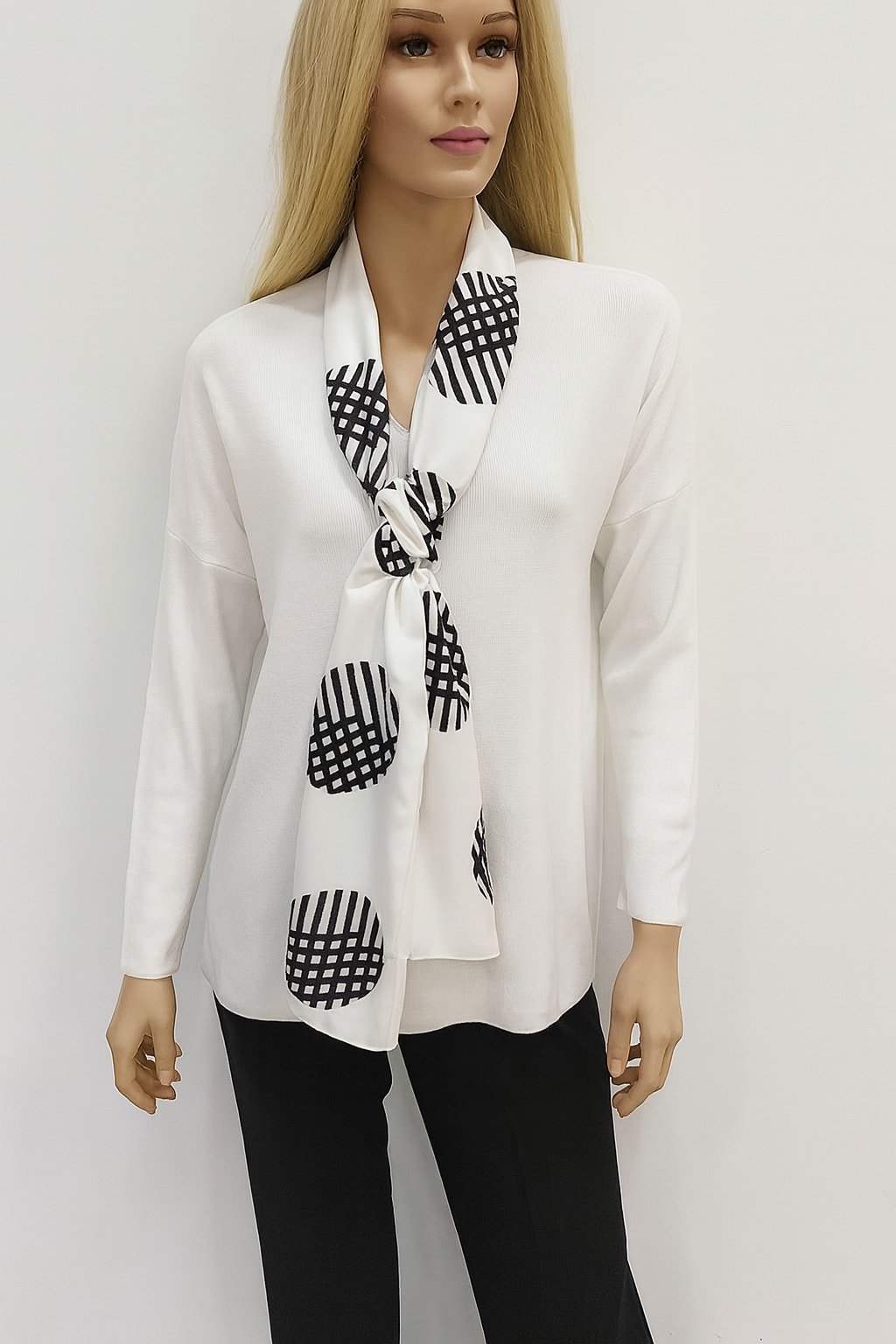İtalyan Beyaz Kendinden Eşarplı Salaş Triko