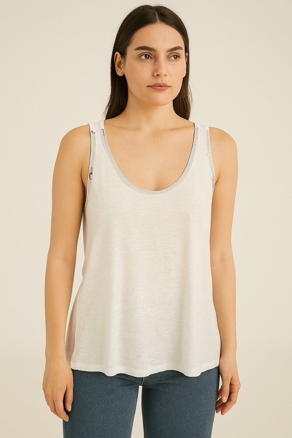İtalyan Beyaz Pullu Cotton Kolsuz Atlet